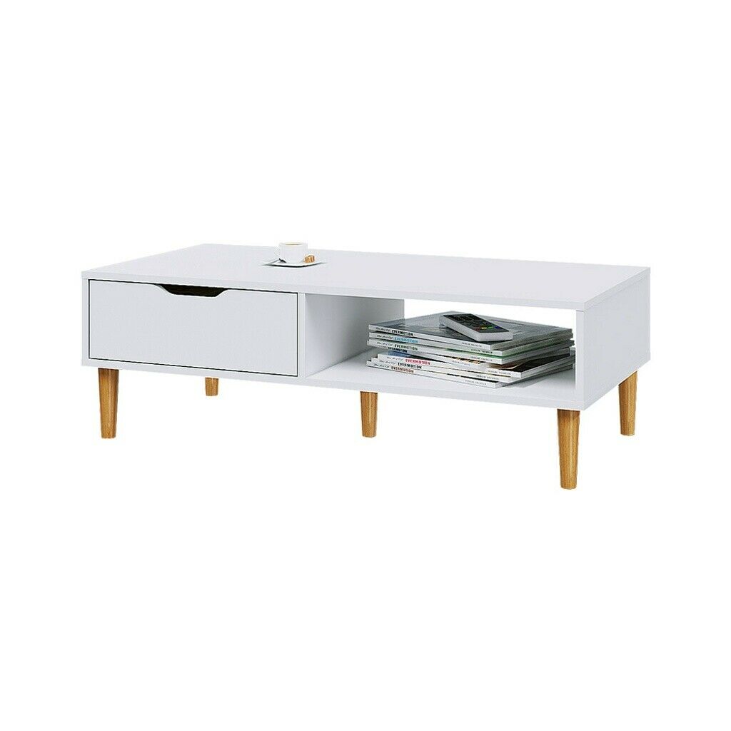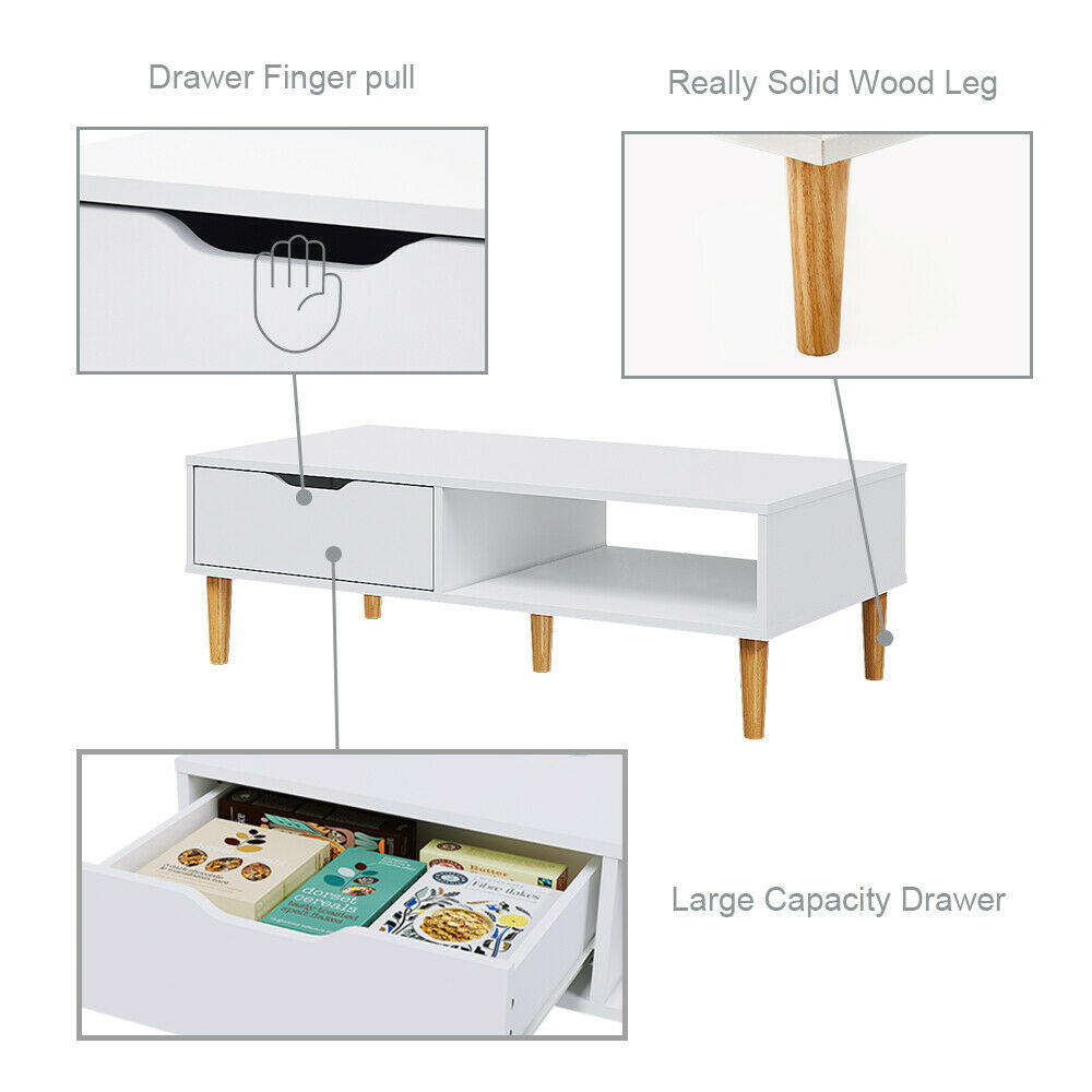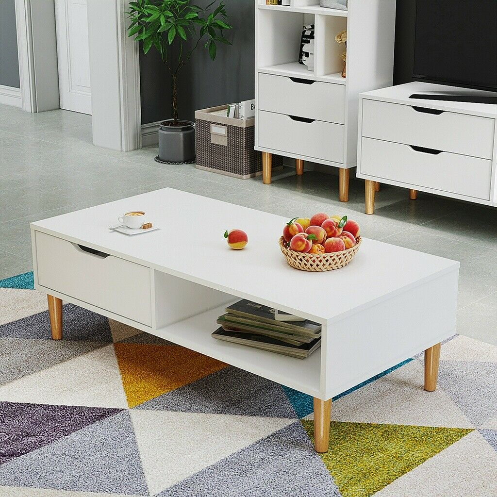 Modern Minimalism Storage Coffee Table Wooden Living Reception Room w/ Drawer