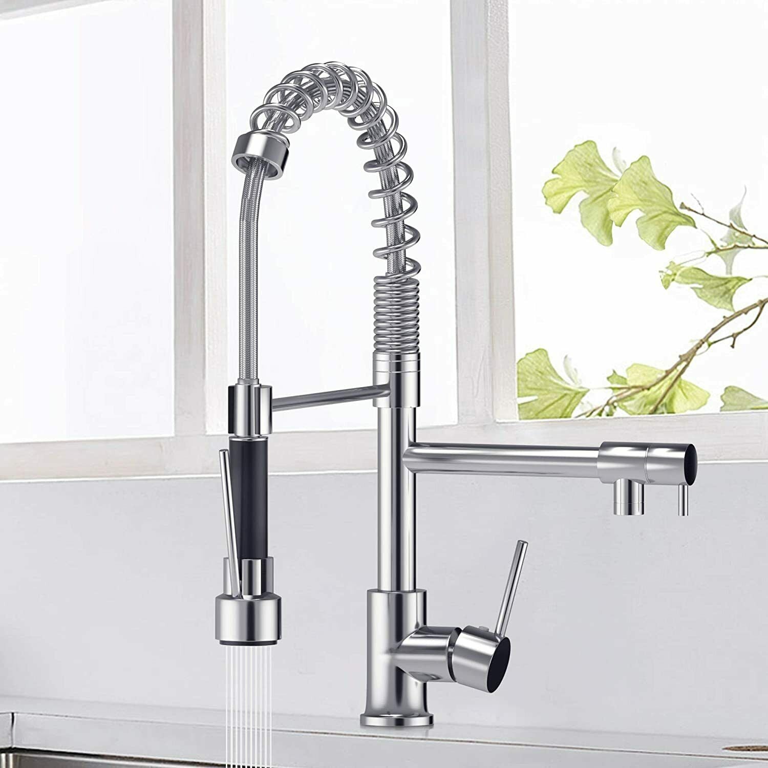 Modern Mono Pull Out Twin Kitchen Mixer Tap Dual Spout Spray Single Lever Chrome