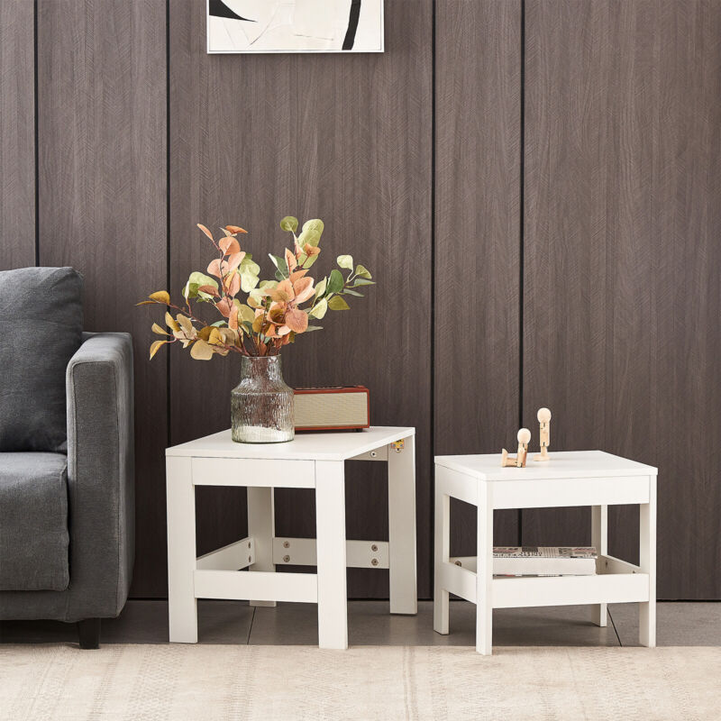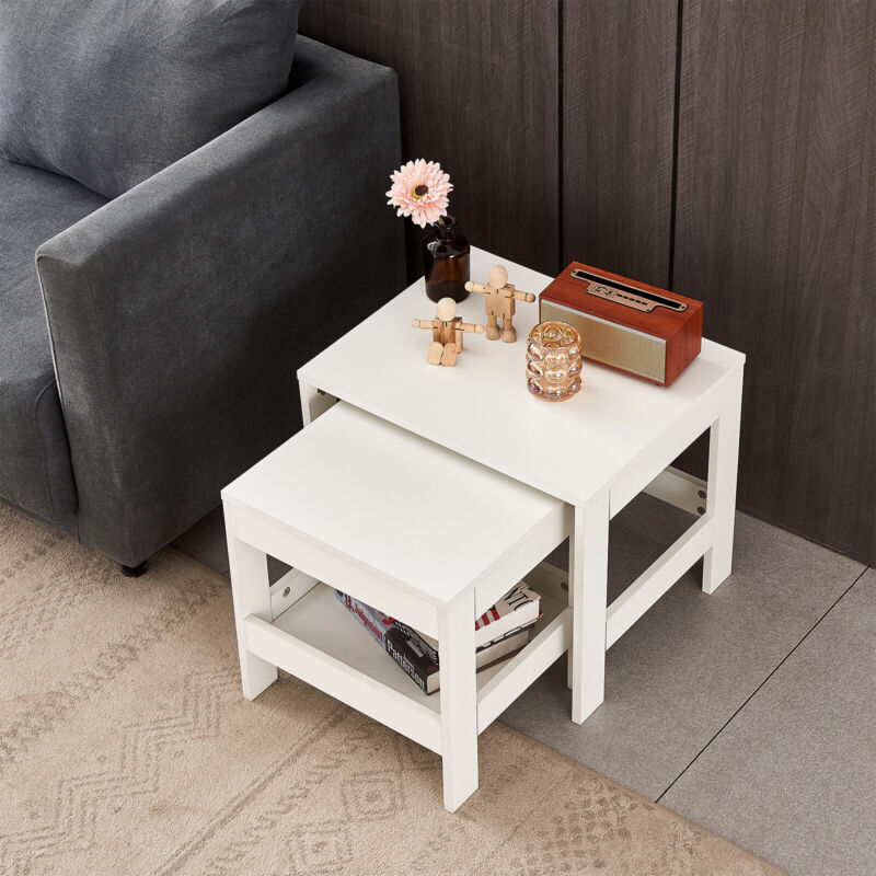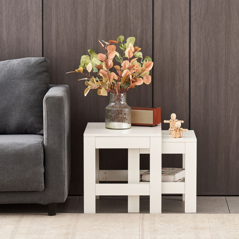 Modern Nest of Tables Wood Set of 2 Coffee Side Table Living Room Furniture UK
