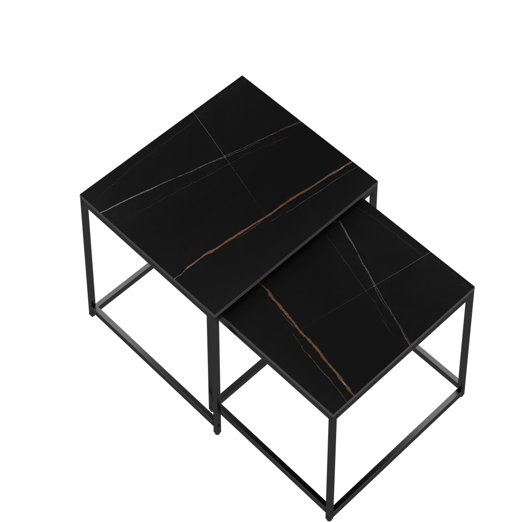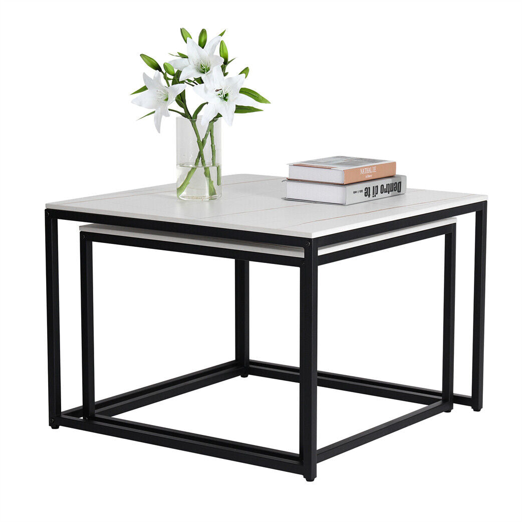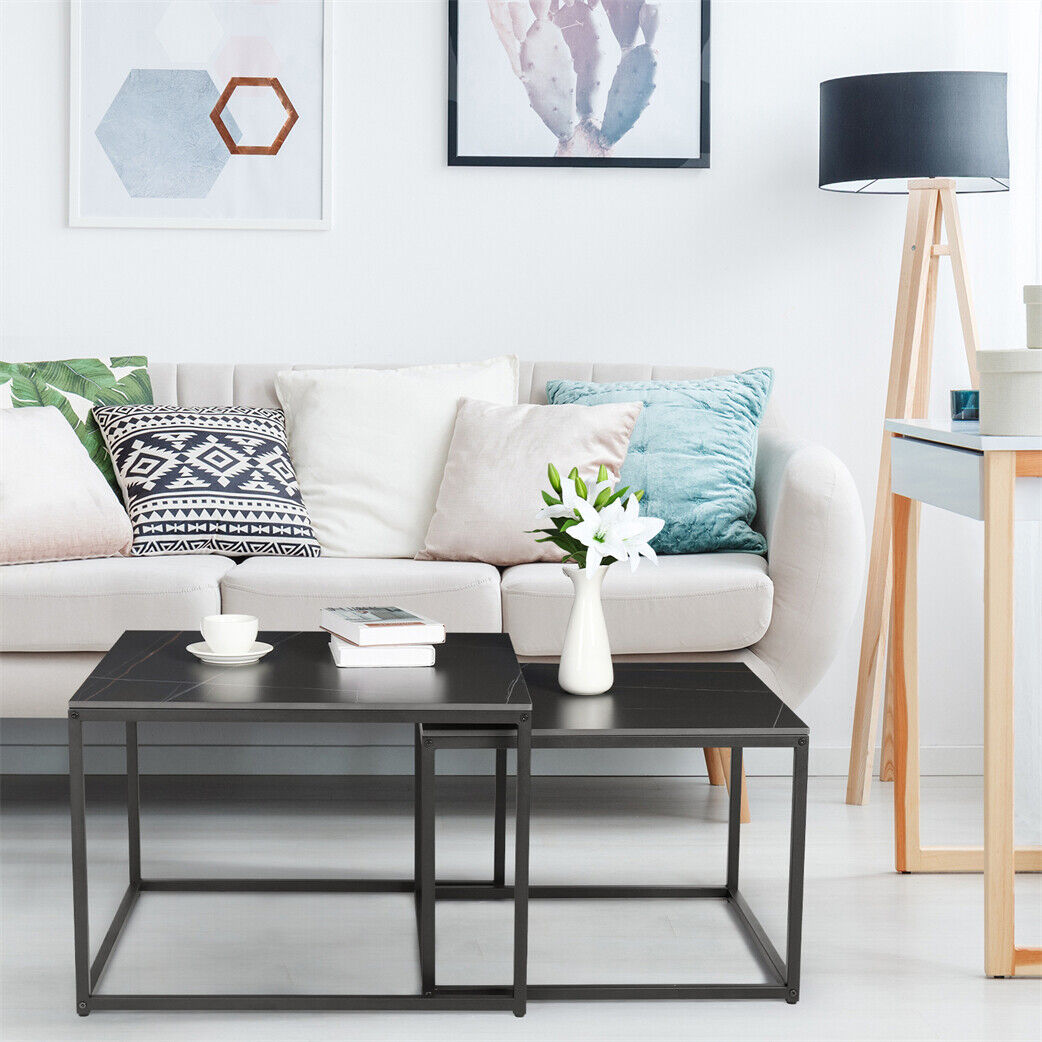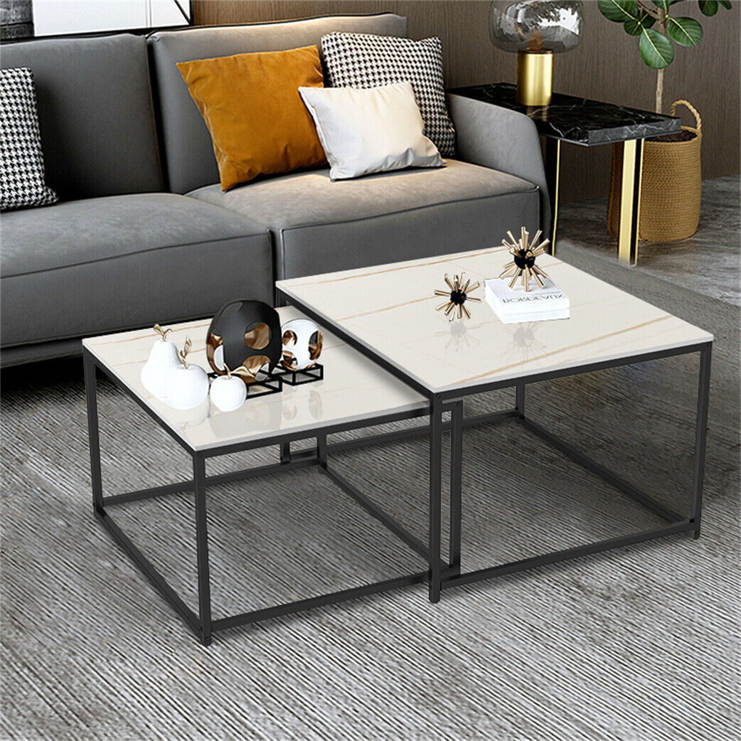 Modern Nested Coffee Table Set of 2 Marble End Table Nesting Sofa Side Tea Table