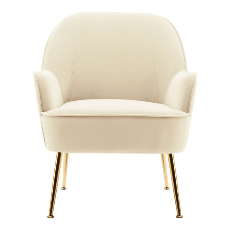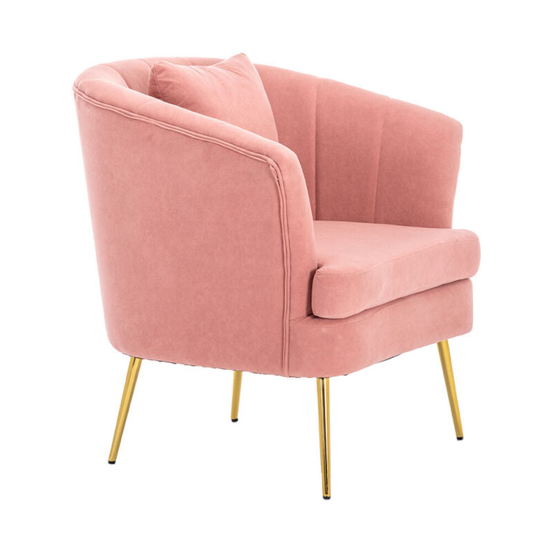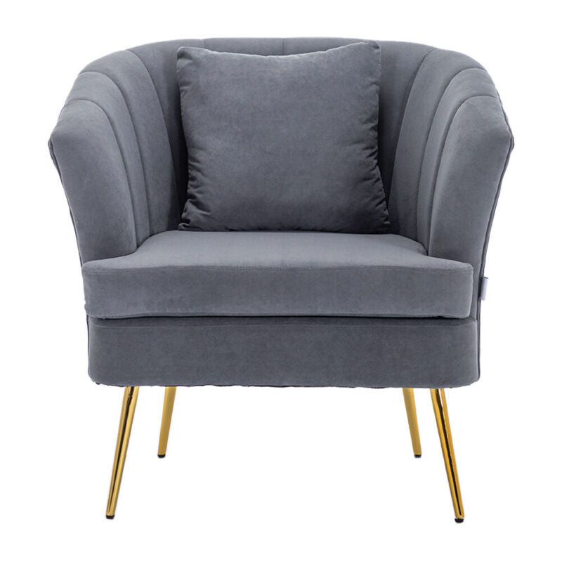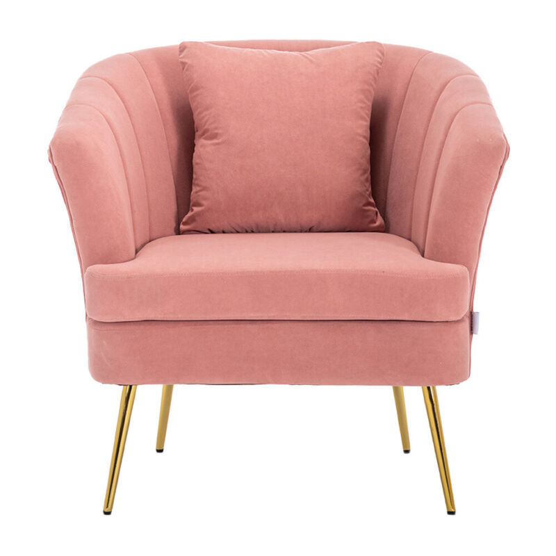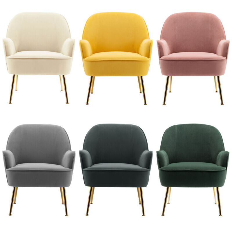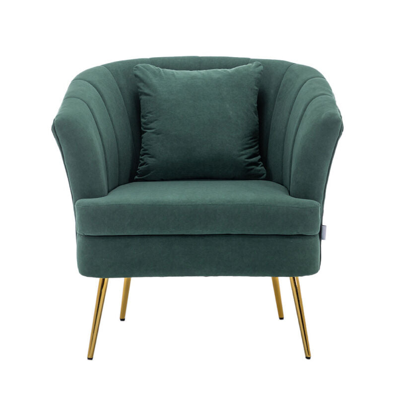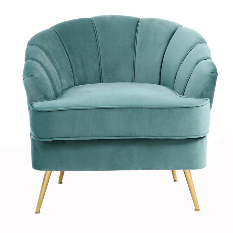 Modern Occasional Velvet Armchair Scallop Wing Back Chair with Golden Legs Sofa