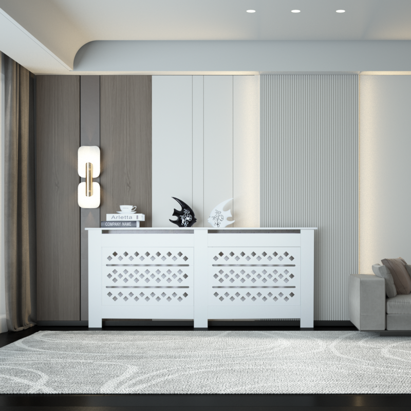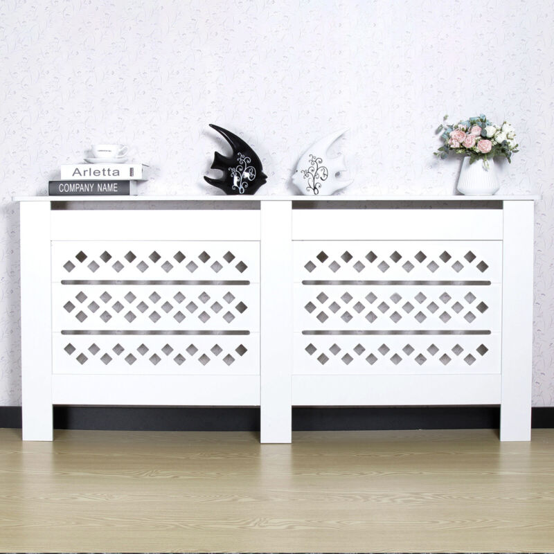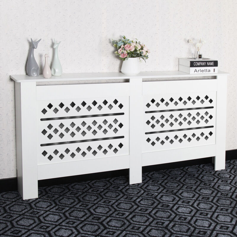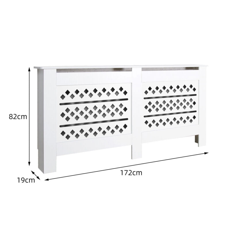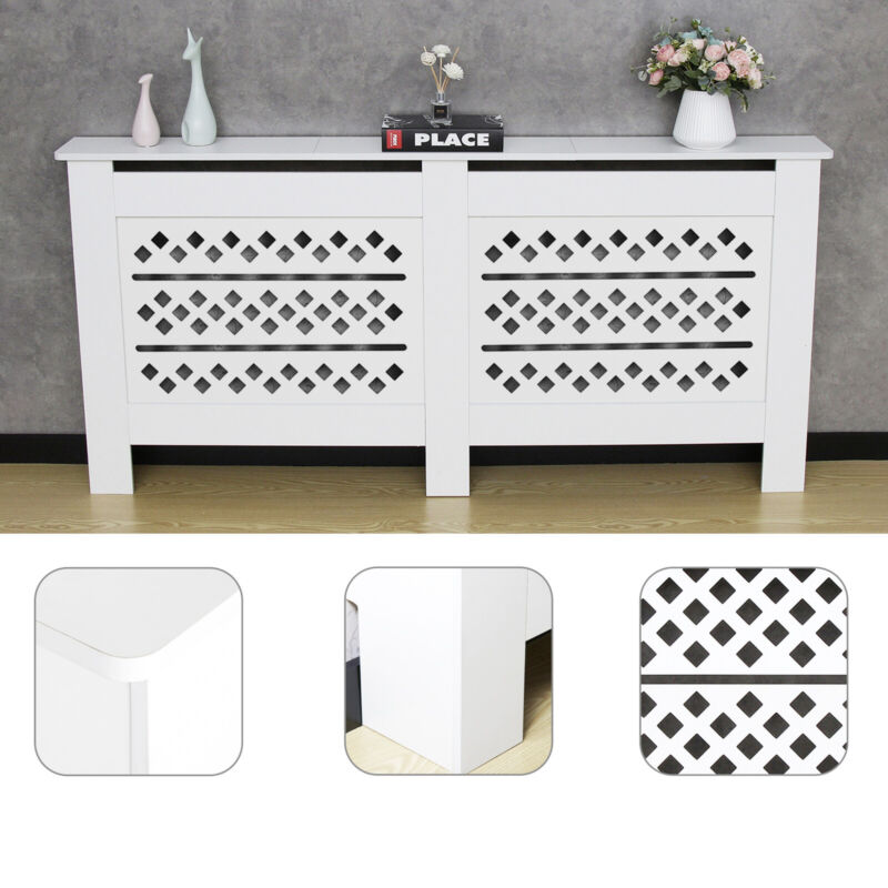 Modern Radiator Cover Wall Cabinet MDF Wood Grill Shelf White Rhombic Bars XL