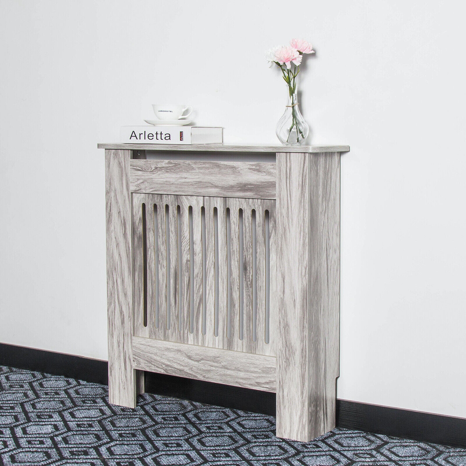 Modern Radiator Cover Wall Cabinet Vertical Grey Wood MDF Grill Shelf Furniture