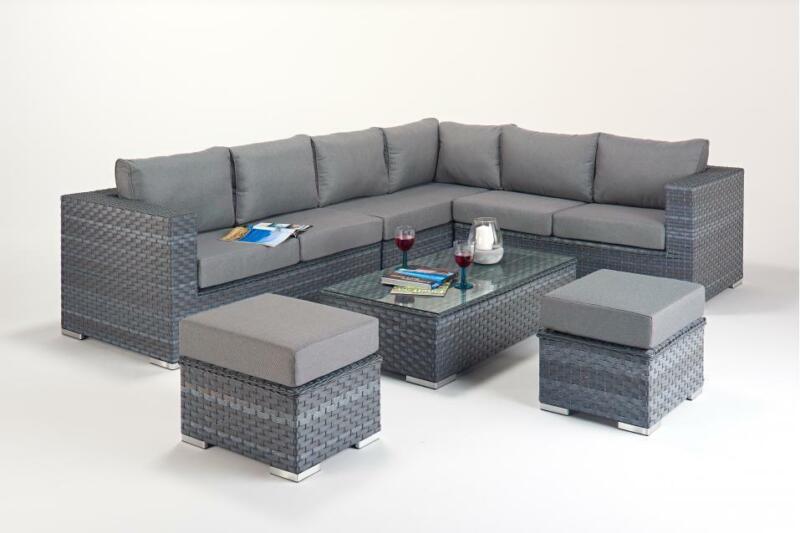 Modern Rattan Corner Sofa, Rattan Stools and Coffee Table Set - Garden Rattan