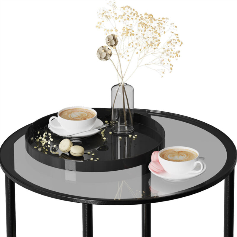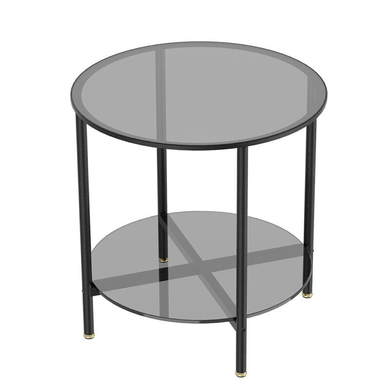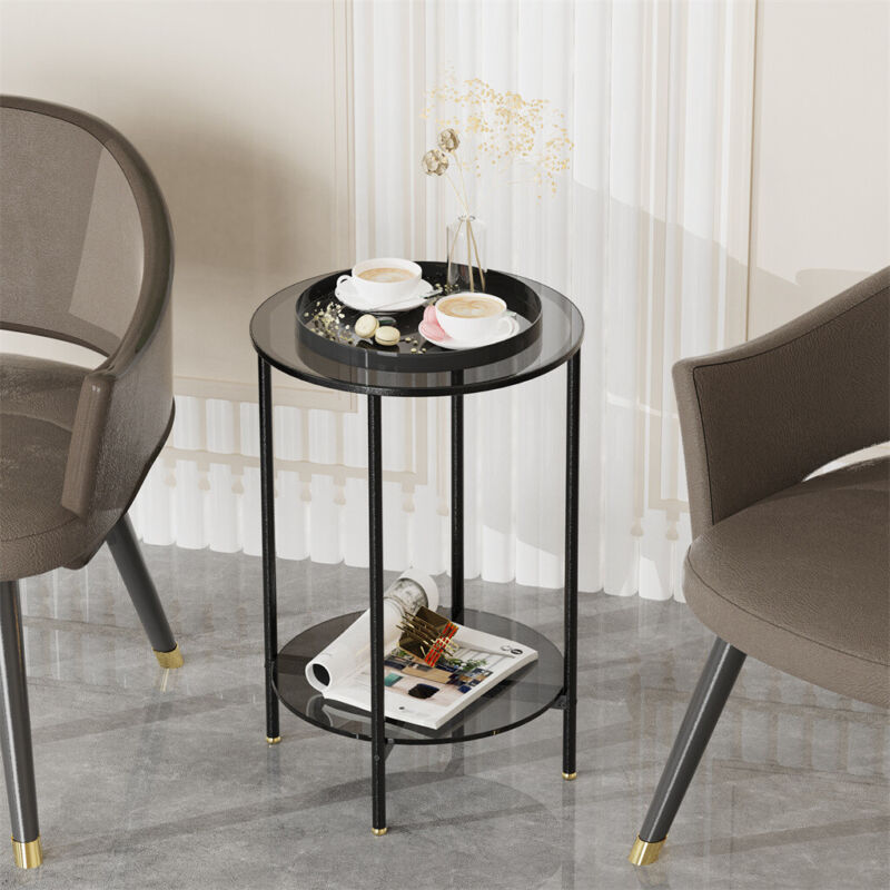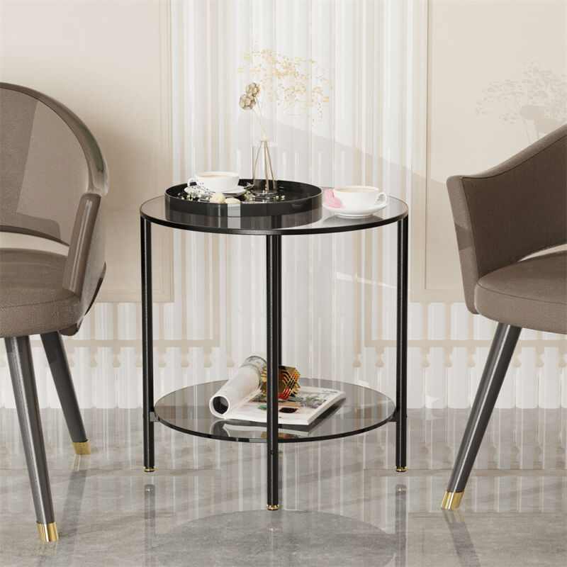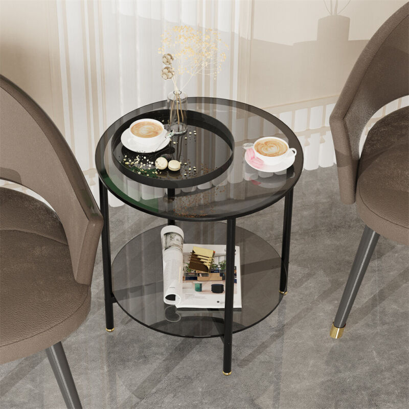 Modern Round 2-Tier Tempered Glass Coffee Table Clear Accent Side Table Storage