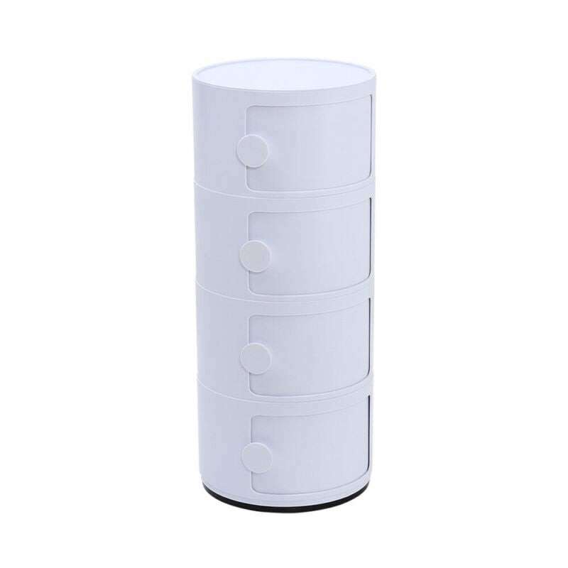 Modern Round Bedside Table Cabinet 4 Chest Of Drawers Storage Bedroom Furniture