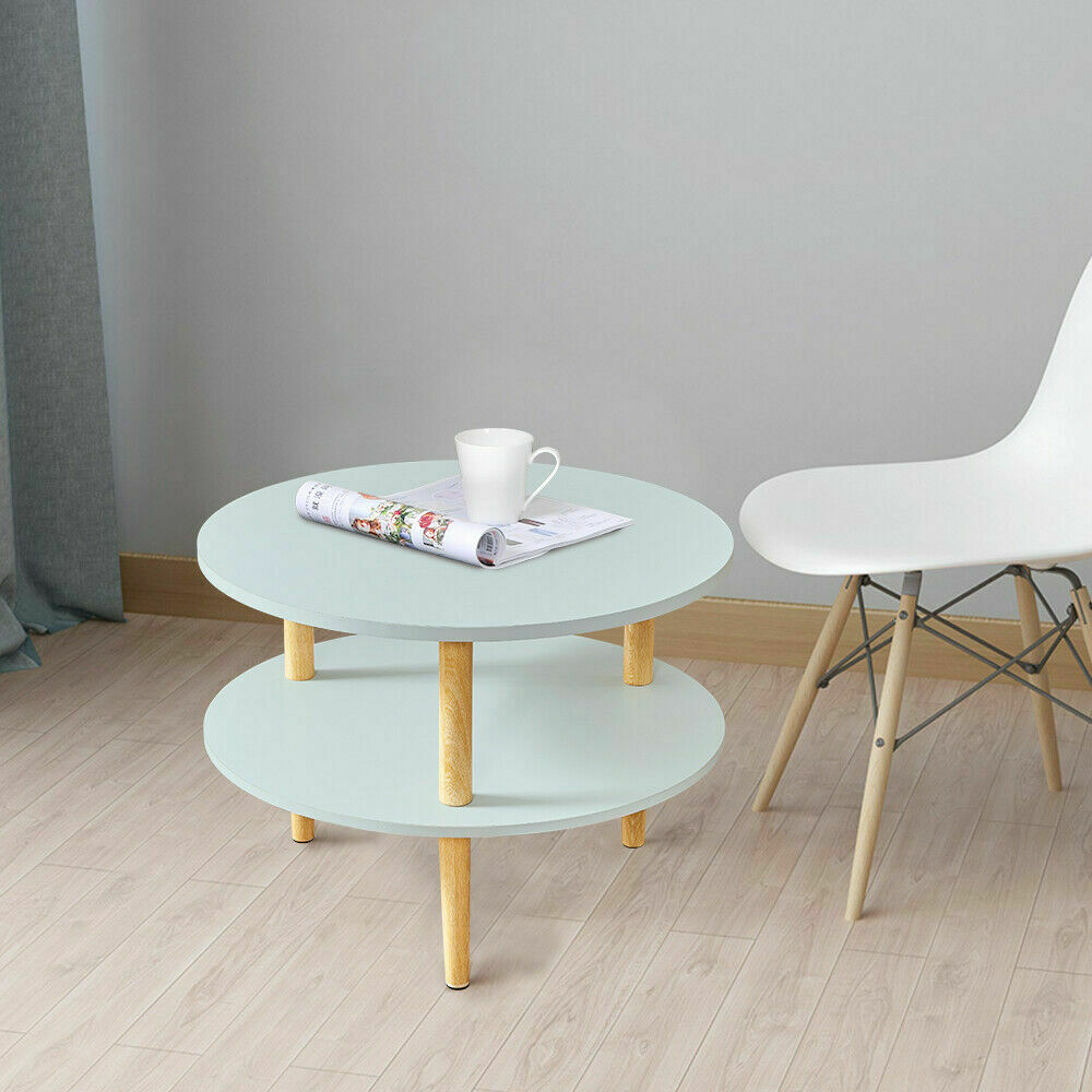 Modern Round Coffee Table Side End Table Tea Sofa Table Living Room 2 Tier Desk