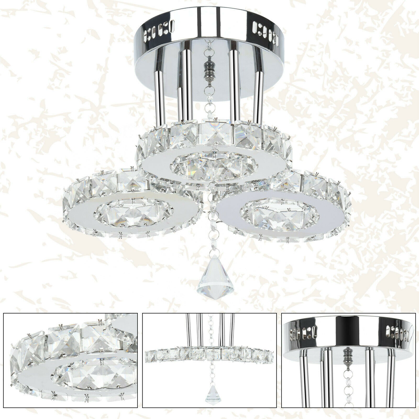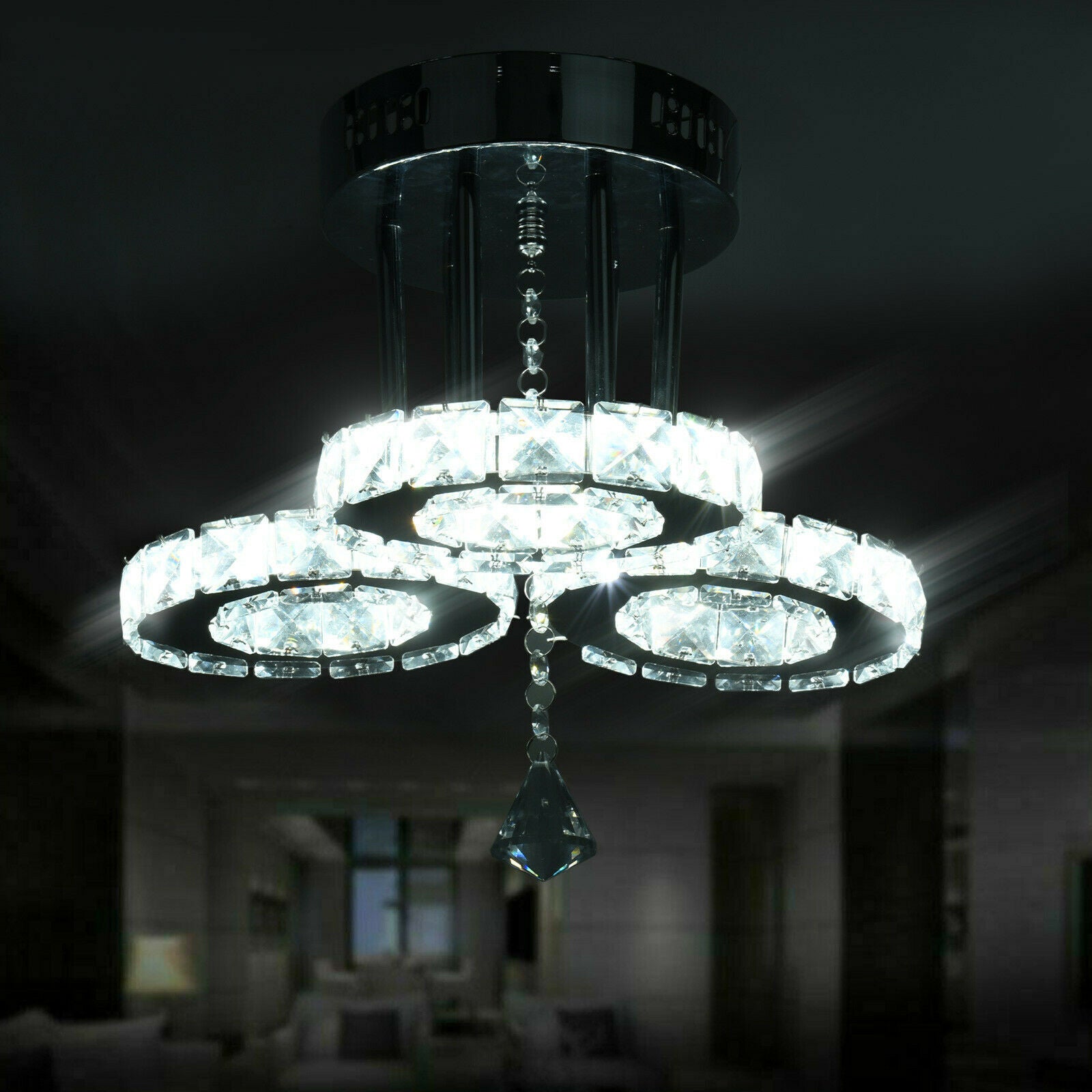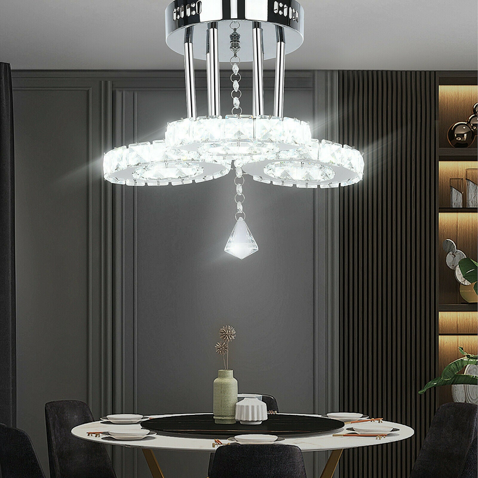 Modern Round LED 3Ring Pendant Ceiling Light Fixture Home Diner Hotel Chandelier