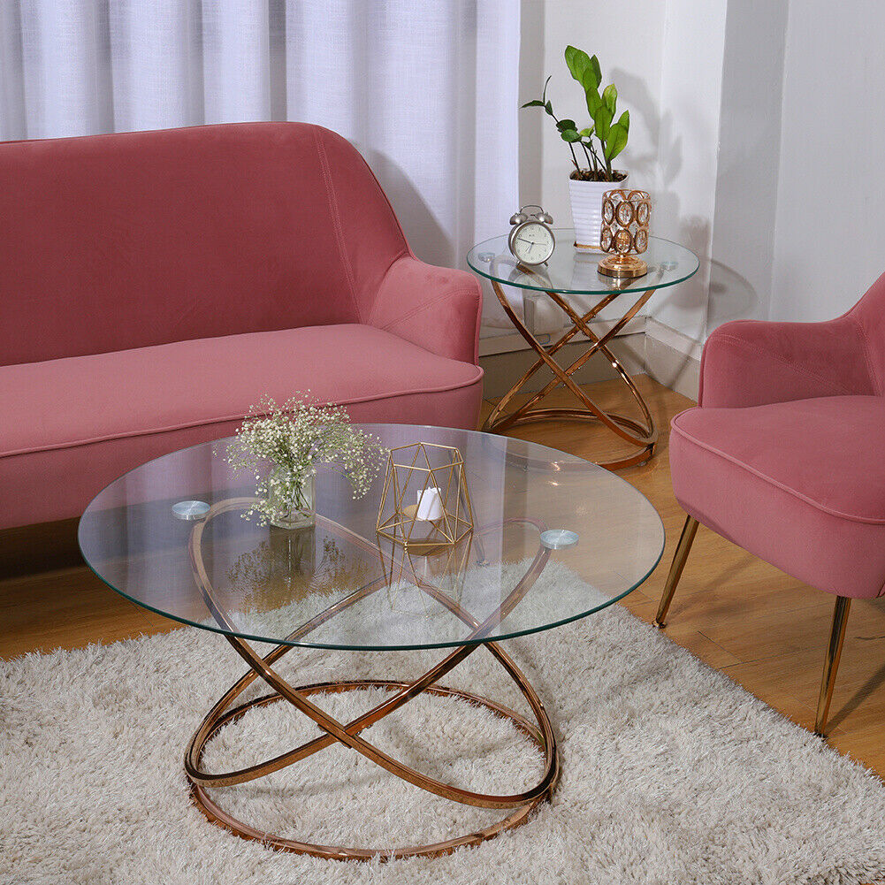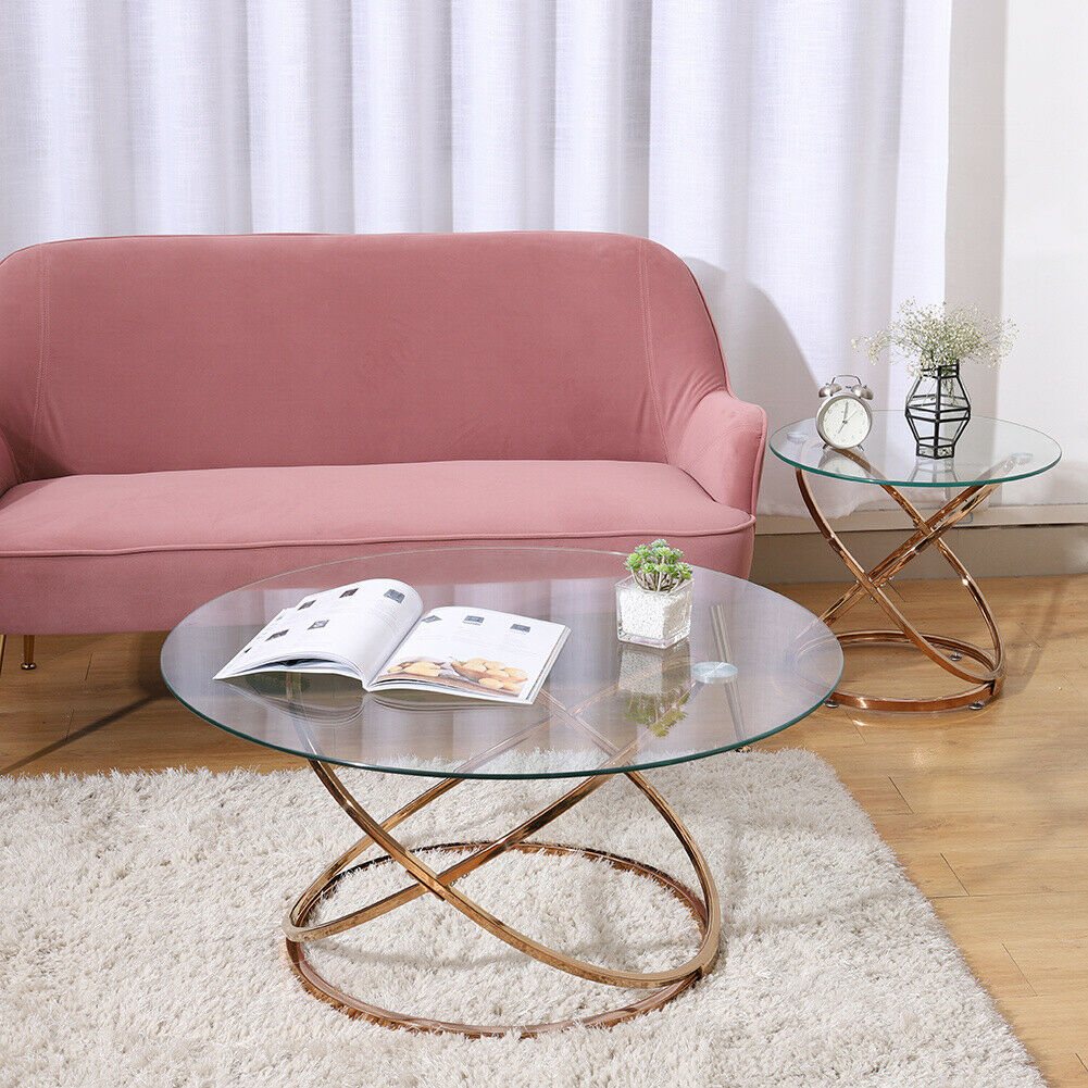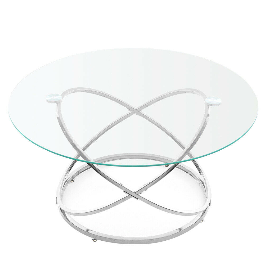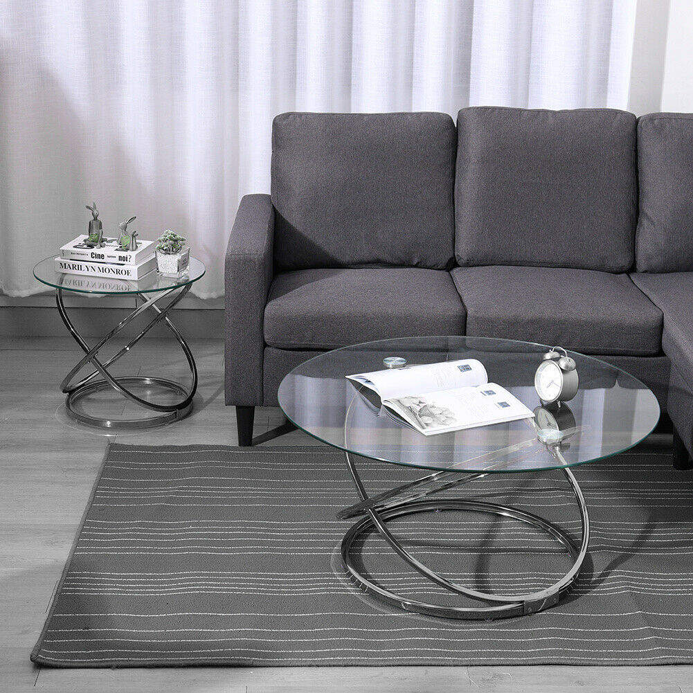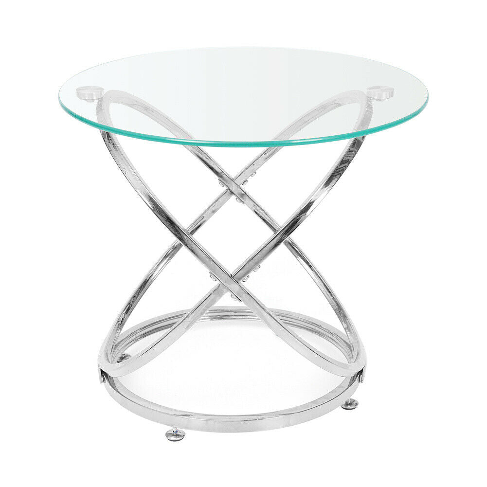 Modern S/Large Round Glass Coffee Table Sofa Side Table Corner End Table Chromed
