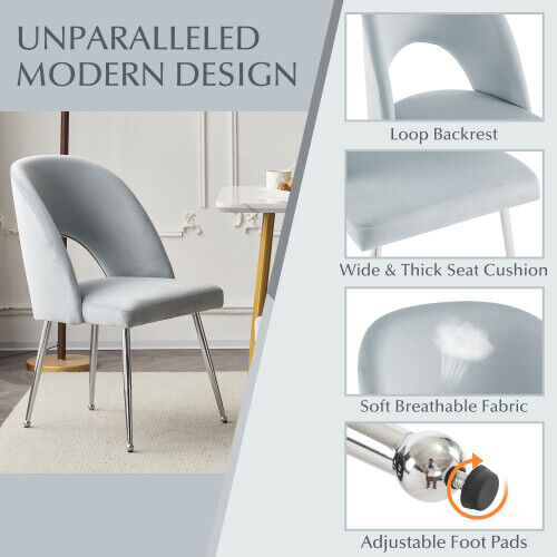 Modern Set of 2 Dining Chair Velvet Upholstered Accent Chair with Metal Legs HT