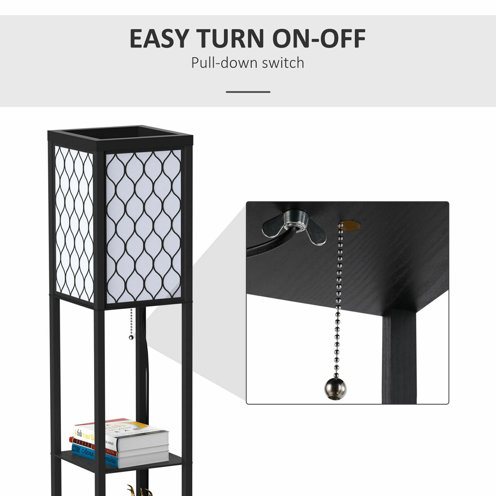 Modern Shelf Floor Lamp Light with 4-tier Open Storage Shelves Wooden Home Unit