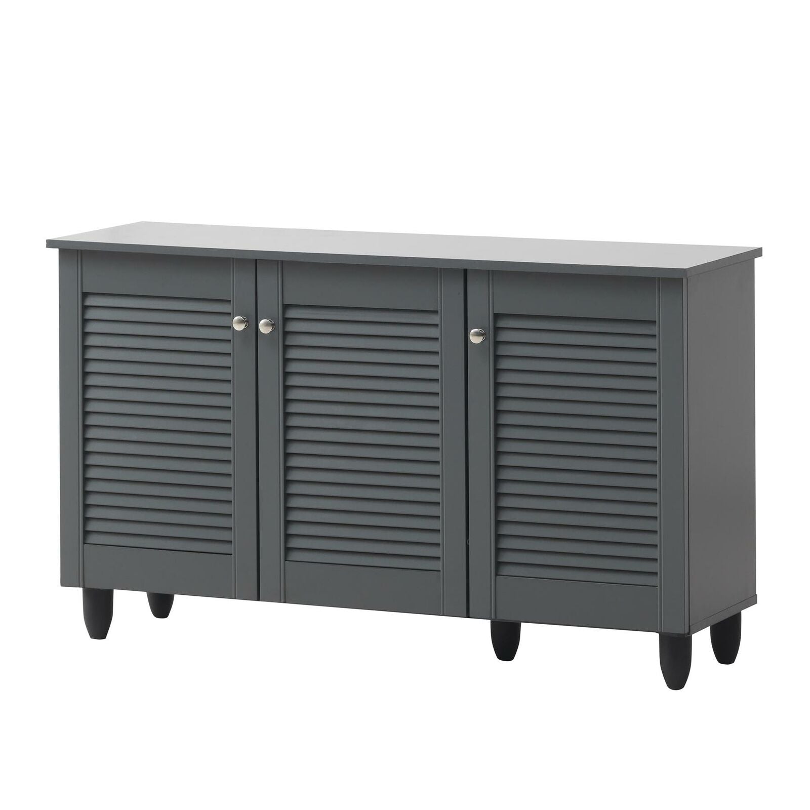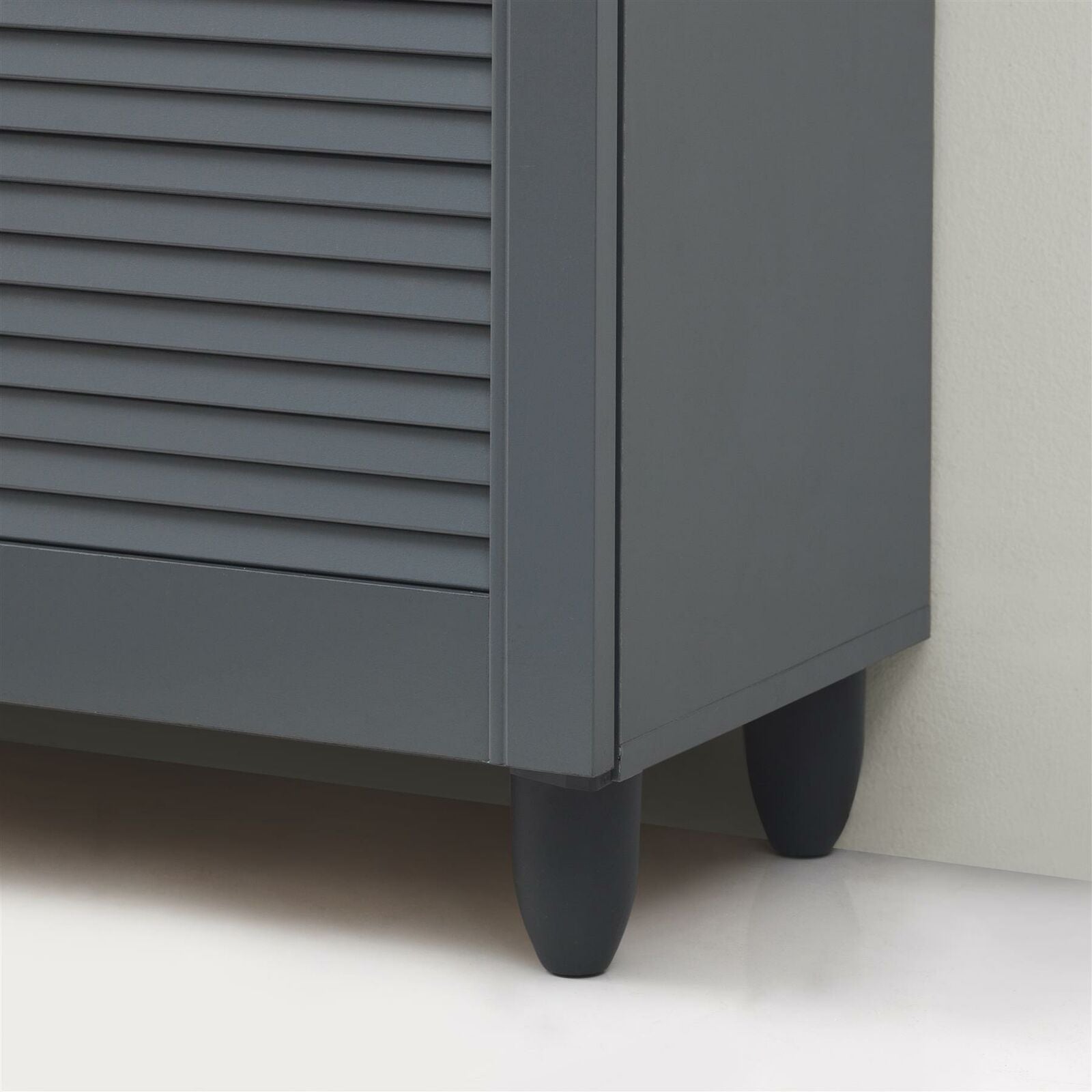 Modern Shoe Storage Cabinet 3 Doors Footwear Stand Rack Unit Cupboard Dark Grey