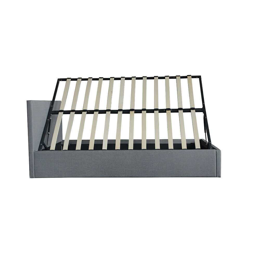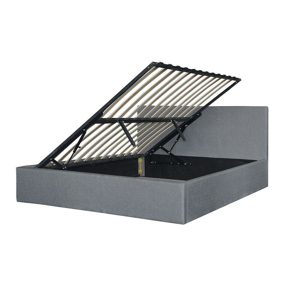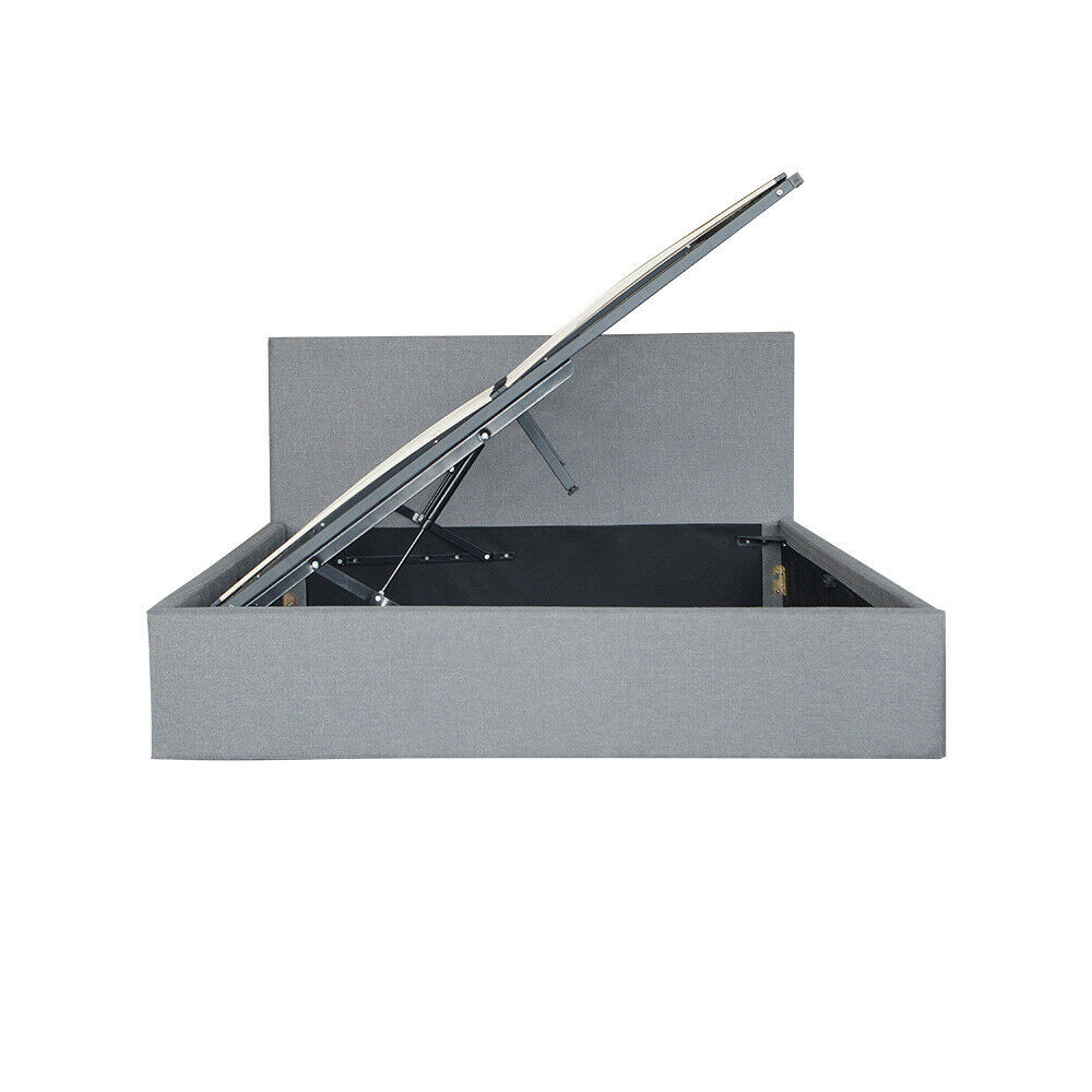 Modern Side Lift Up Storage Bed Frame Ottoman Divan Base & Headboard in Grey