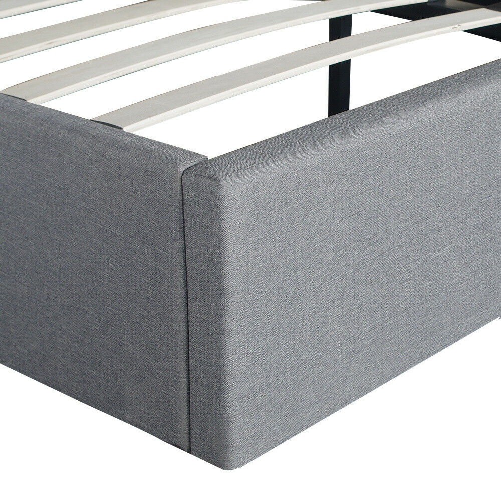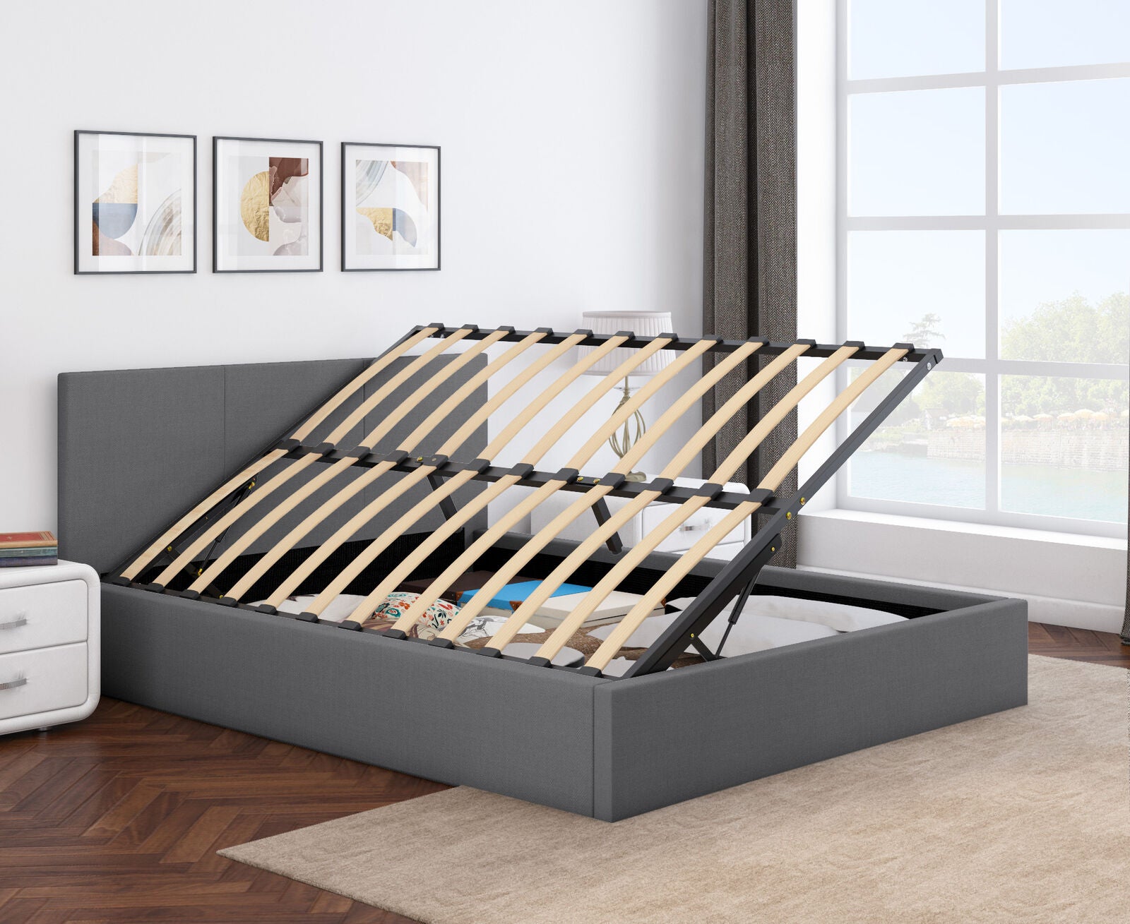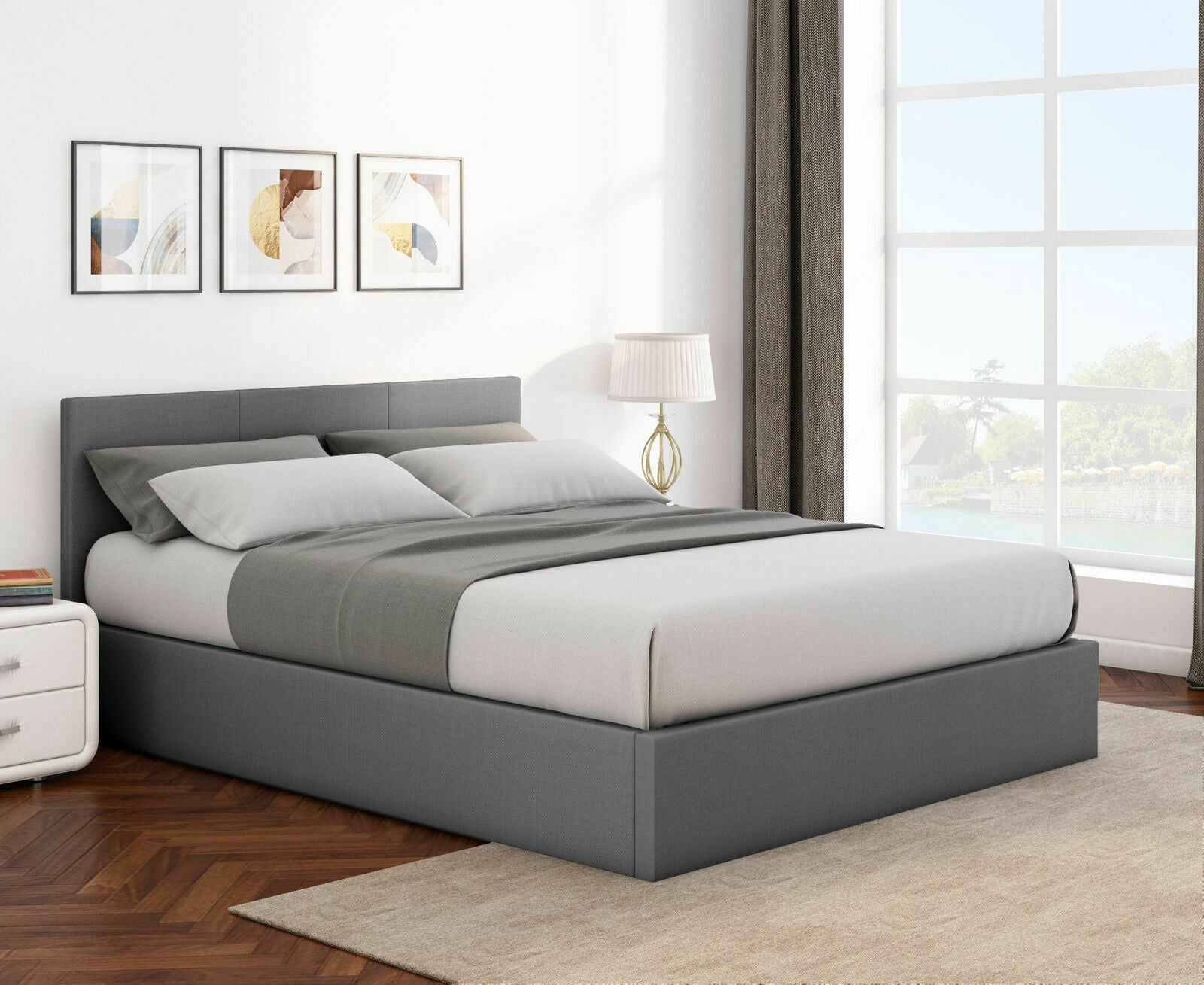 Modern Side Lift Up Storage Bed Frame Ottoman Divan Base & Headboard in Grey