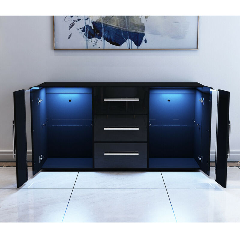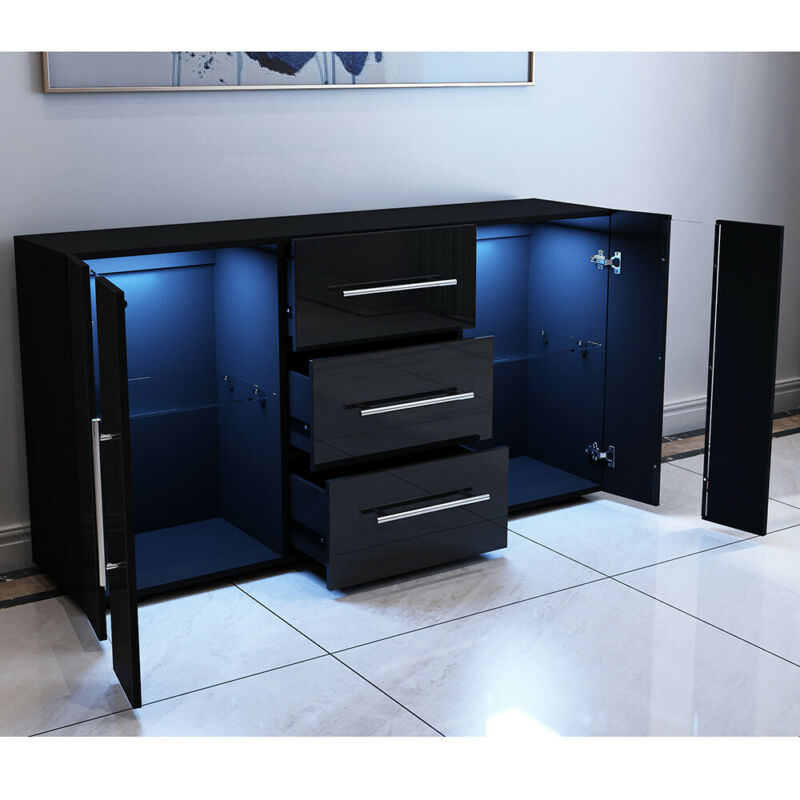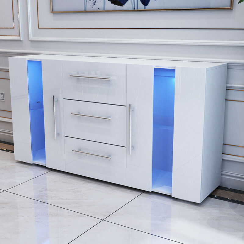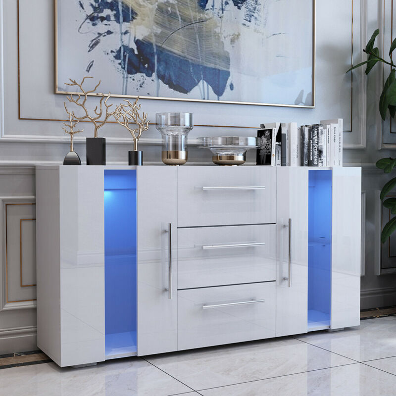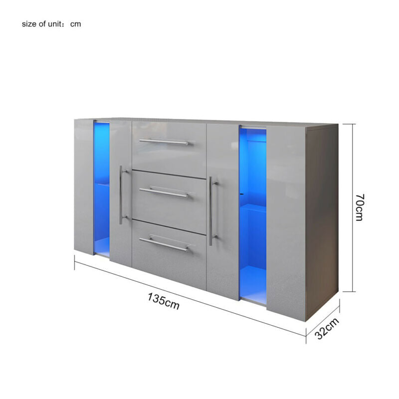 Modern Sideboard Display Cabinet Cupboard High Gloss 2 Doors 3 Drawers LED