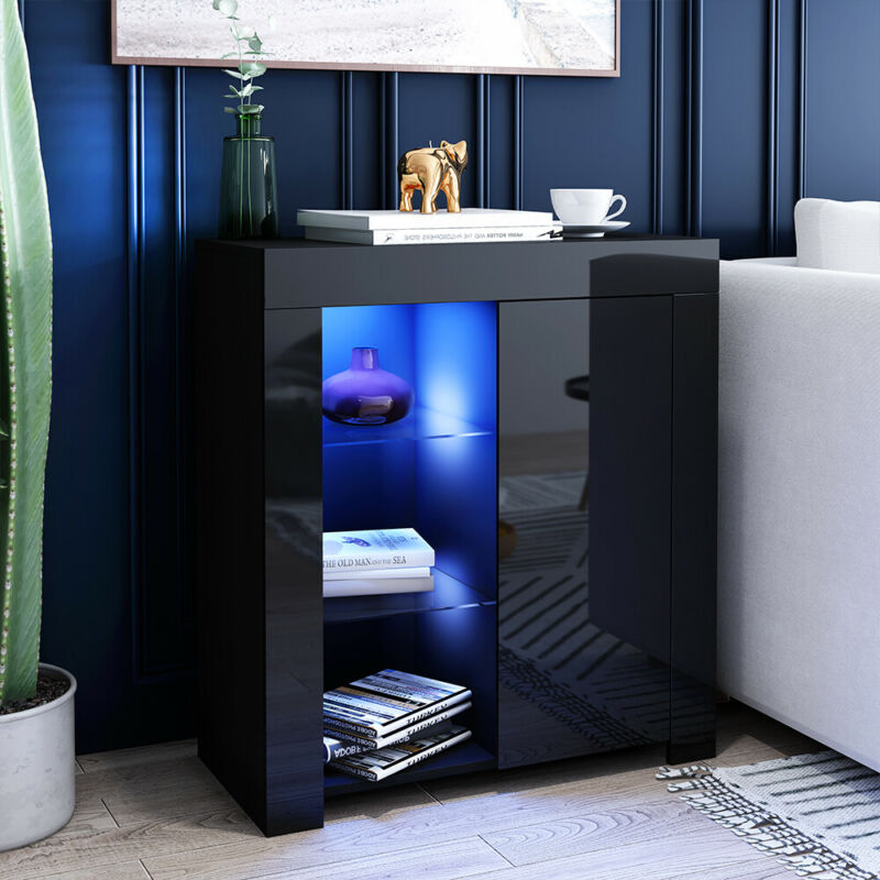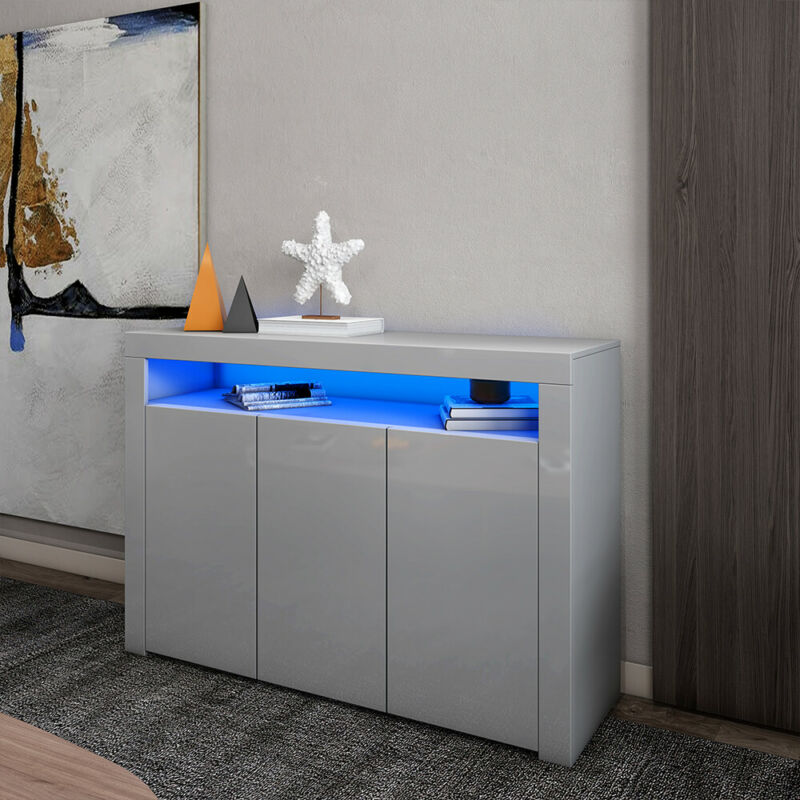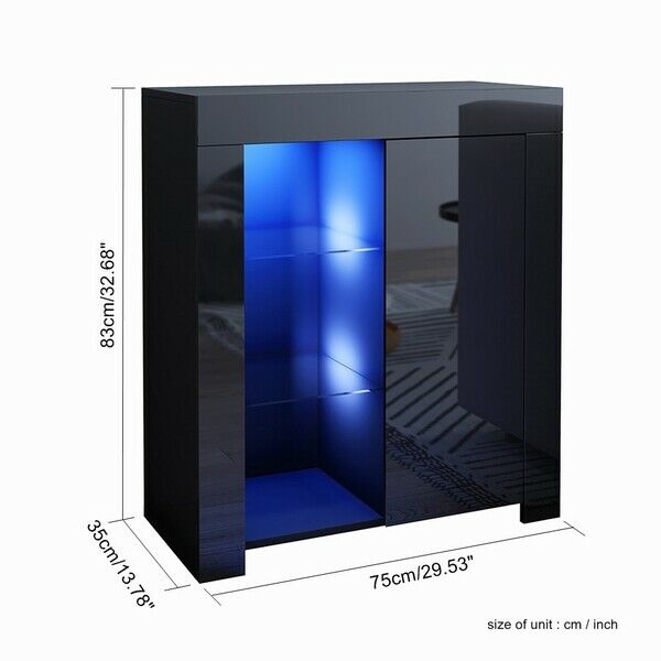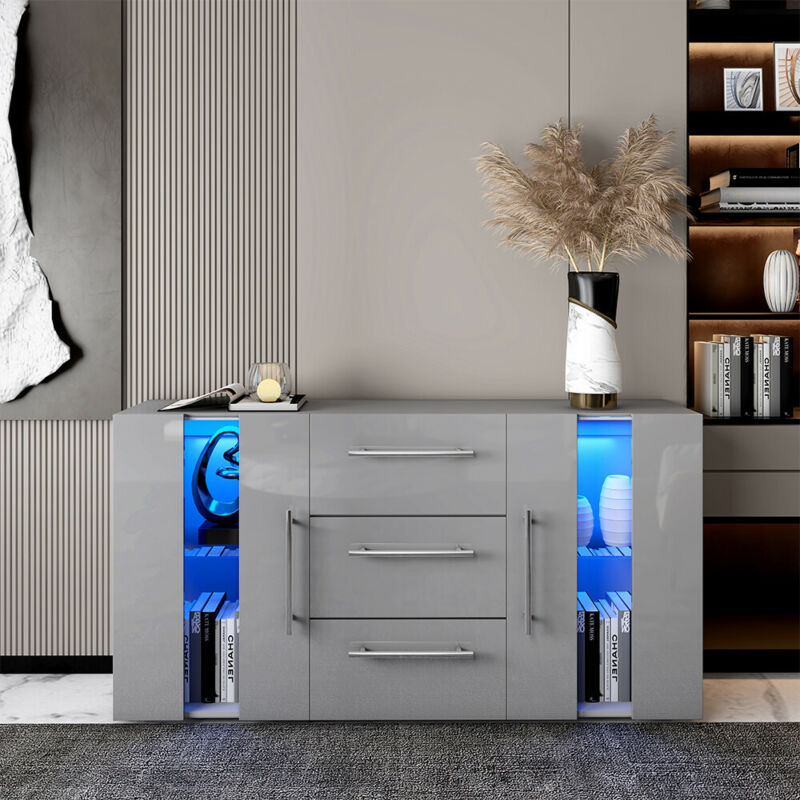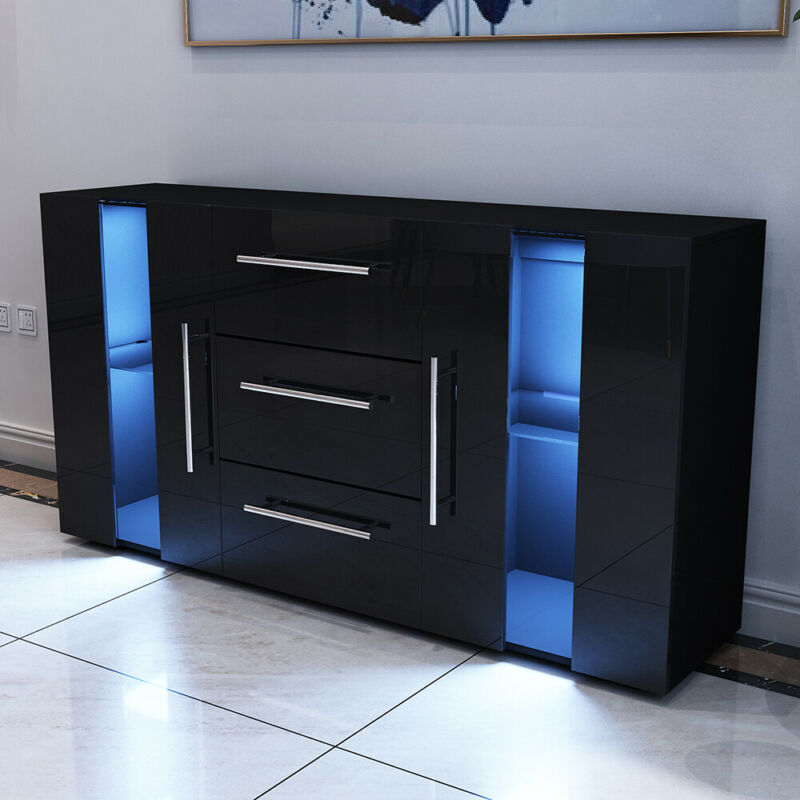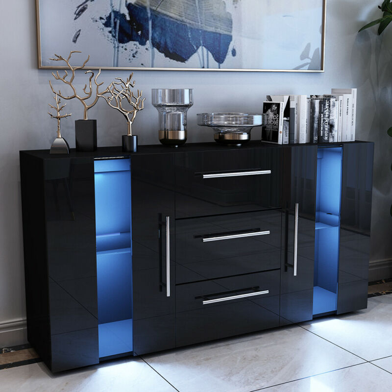 Modern Sideboard Display Cabinet Cupboard High Gloss 2 Doors 3 Drawers LED