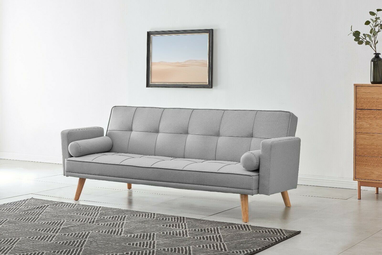 Features: Solid Construction, Various Colours Available, Fast and Free Delivery, Modern and Stylish Design, Bolster Cushions, Tufted Back, Sofa Bed Function, With Cushions
