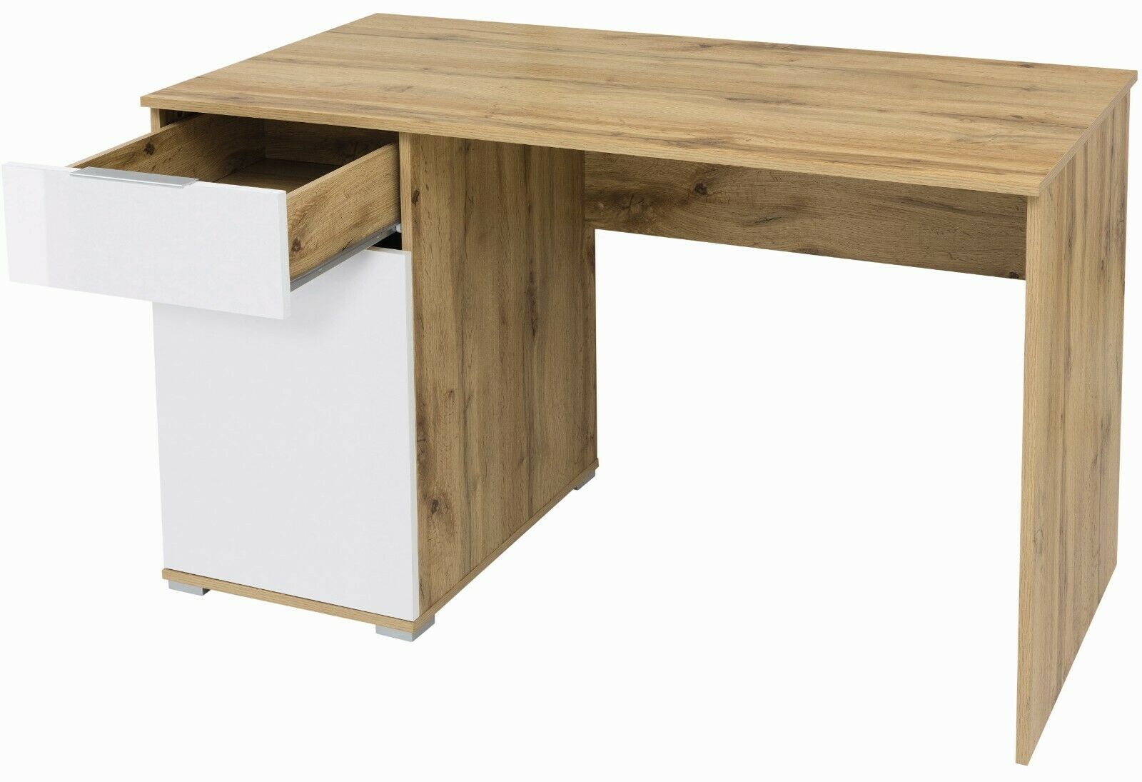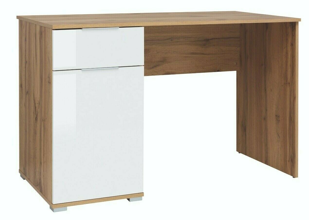 Modern Study Office Desk Storage Cupboard Drawer White Gloss Oak finish 120 Zele