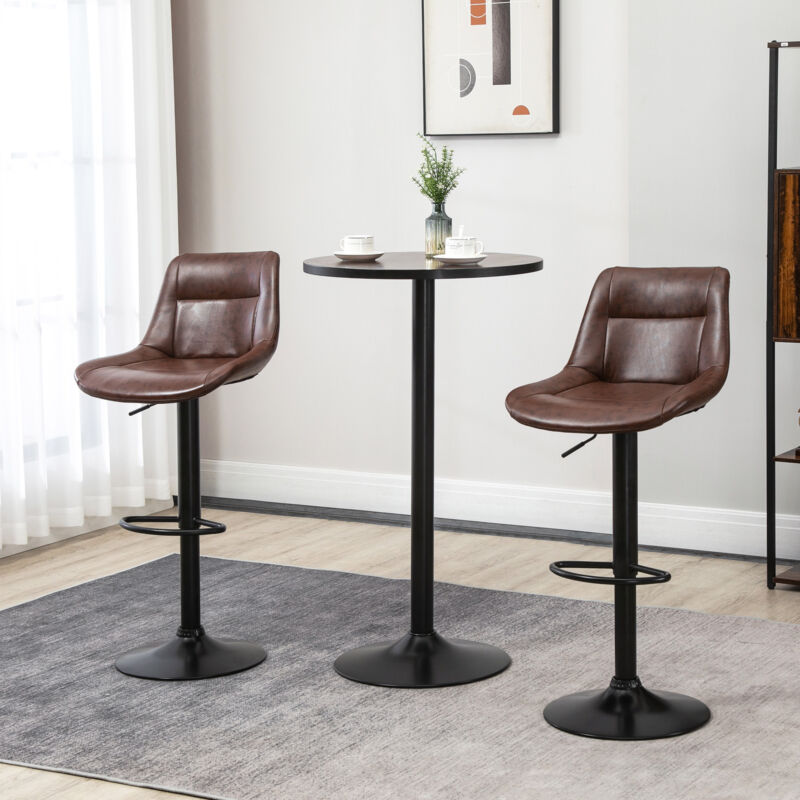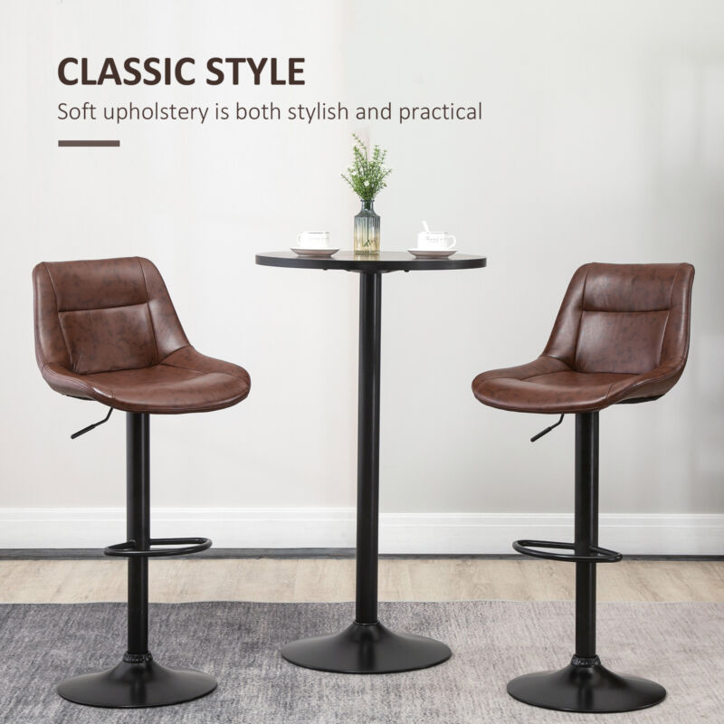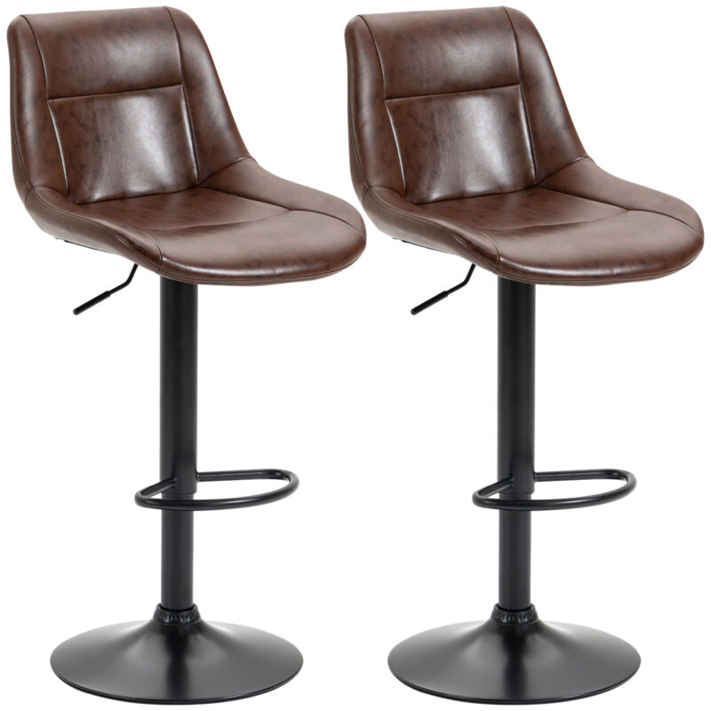 Modern Swivel Bar Stools Set of 2 Adjustable Height Bar Chairs Footrest Brown