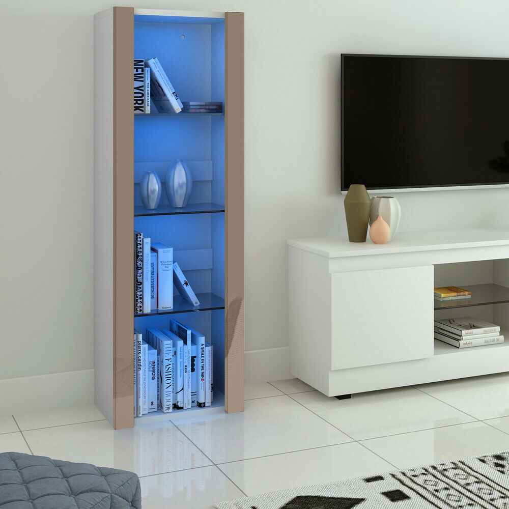 Modern Tall Display Cabinet Cupboard Sideboard with RGB LED Lights Living Room