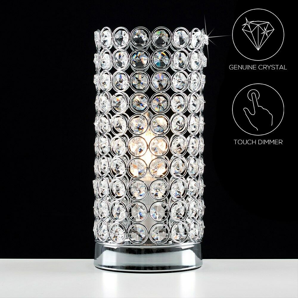 Modern Touch Table Lamp 23cm Genuine Crystal Dimmer Chrome Lounge Light Home