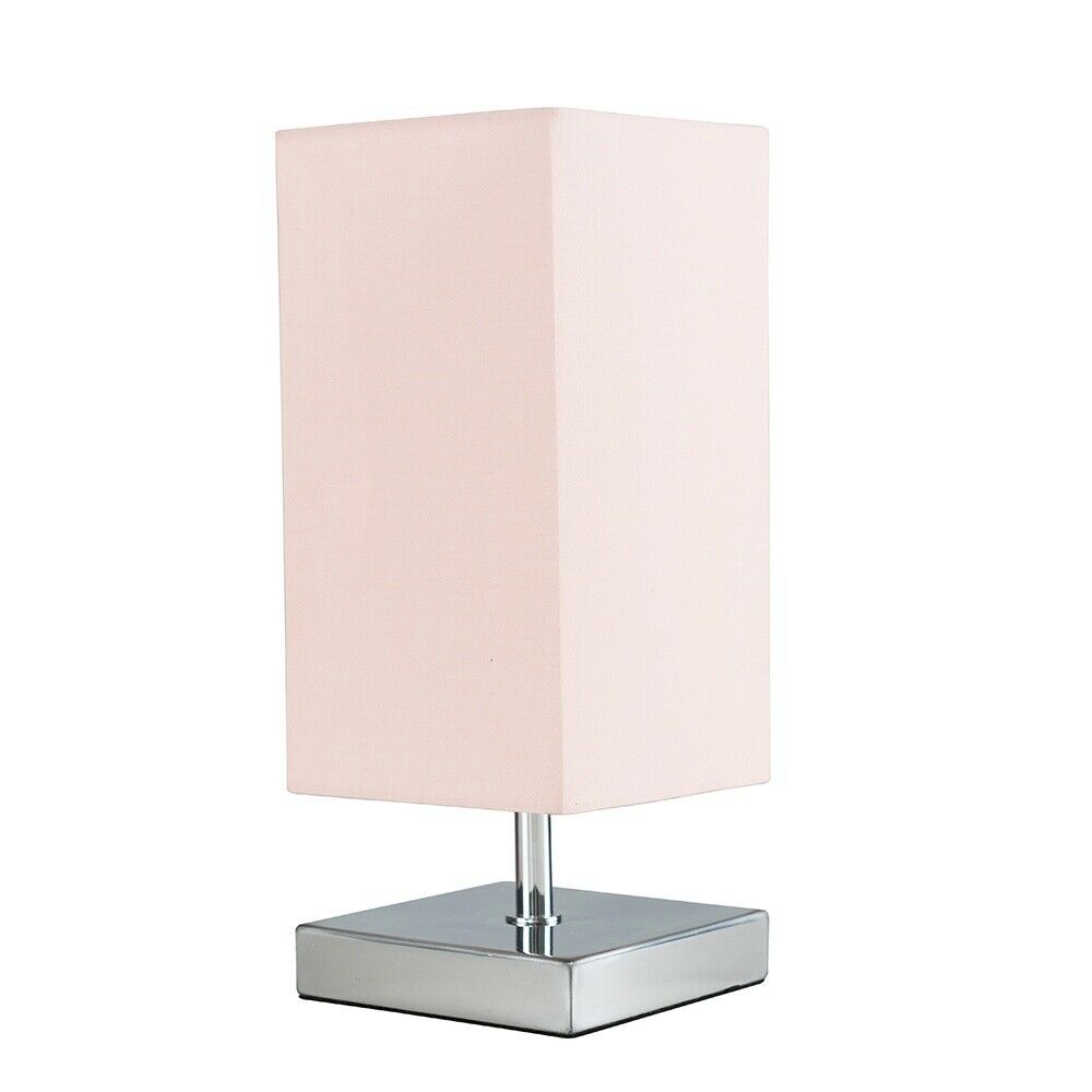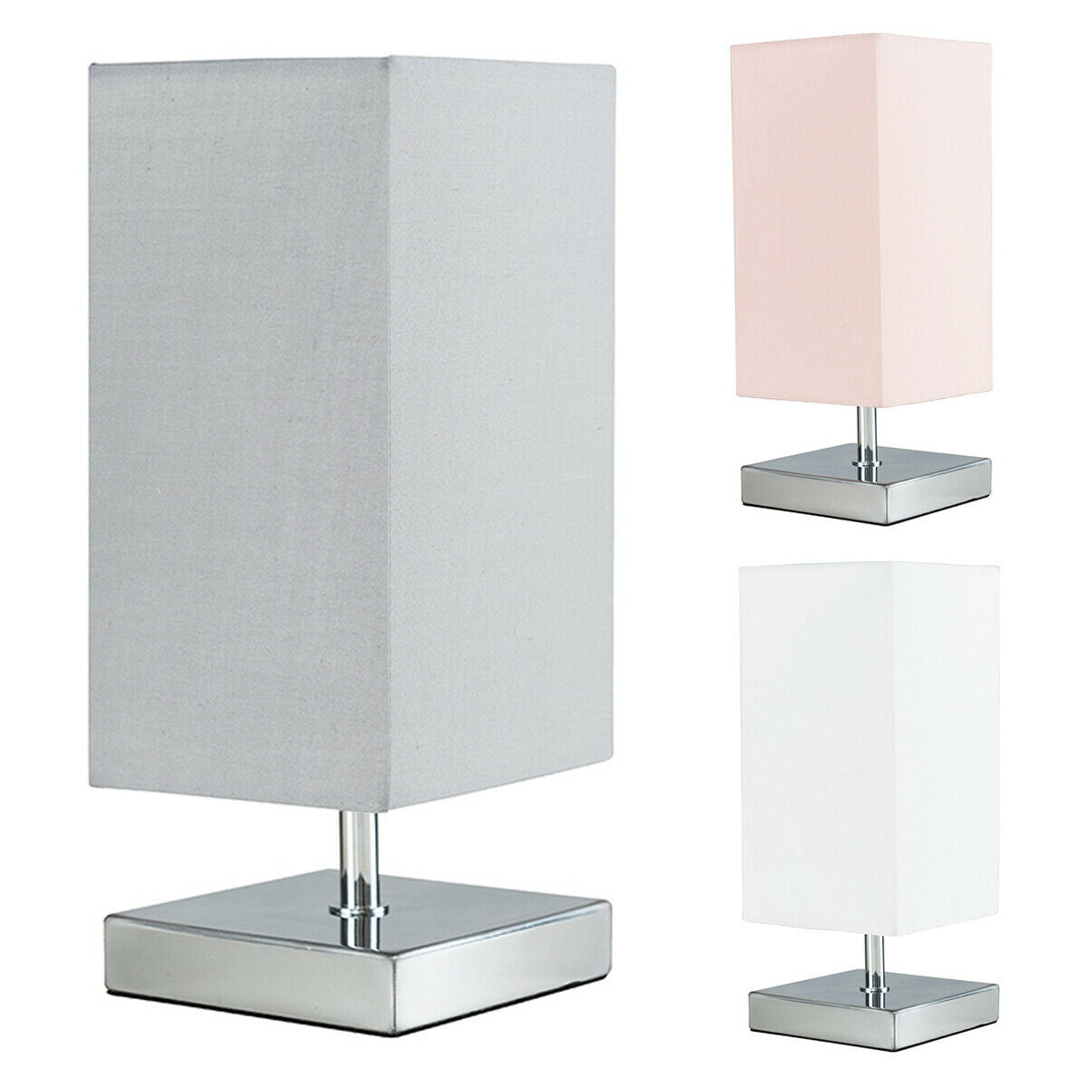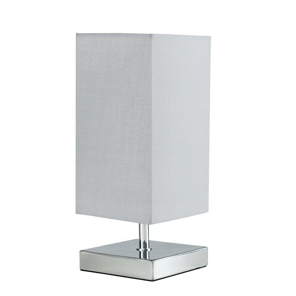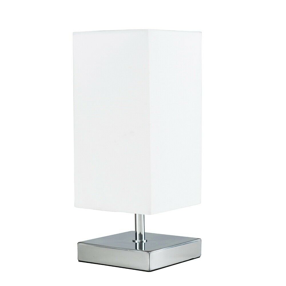 Modern Touch Table Lamps Chrome Square Fabric Lampshades LED Light Bulb Lighting