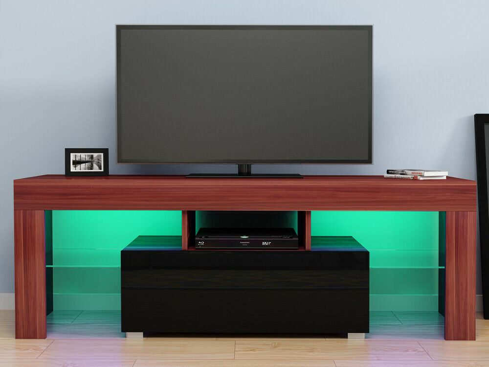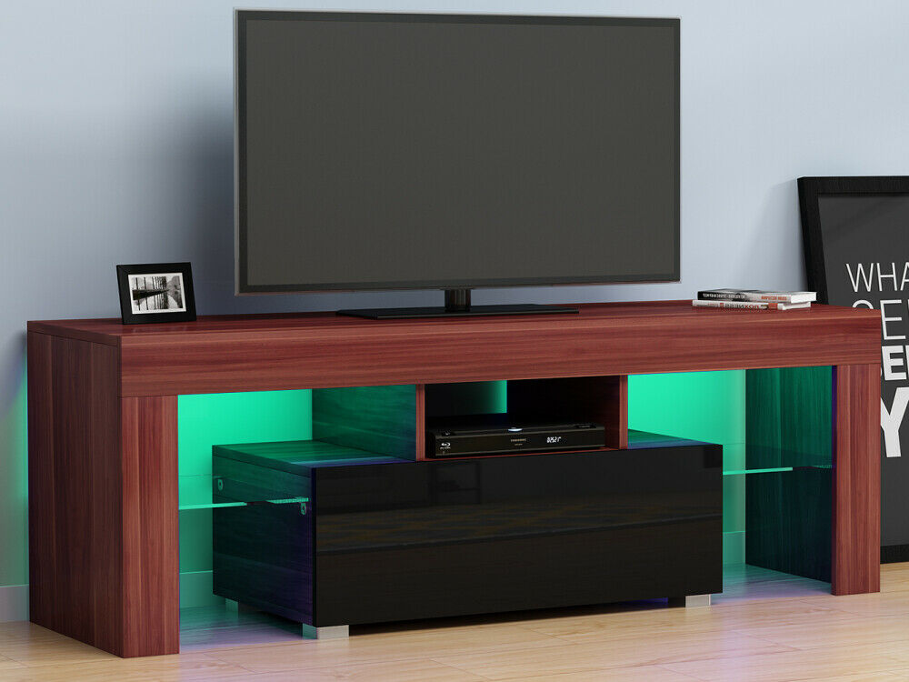 Modern TV Stand Cabinet Unit 1 Drawer Black High Gloss Door Walnut Living Room