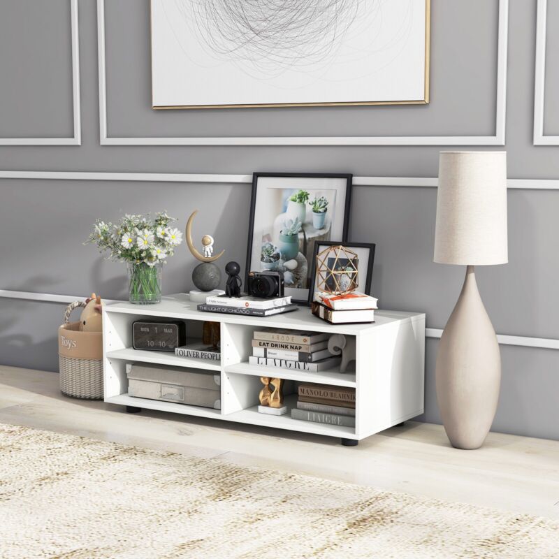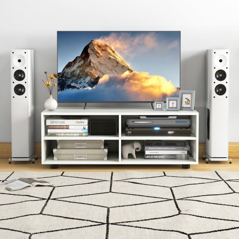 Modern TV Stand for TVs up to 40 Inch Wooden 4 Cubbies Media TV Console Table