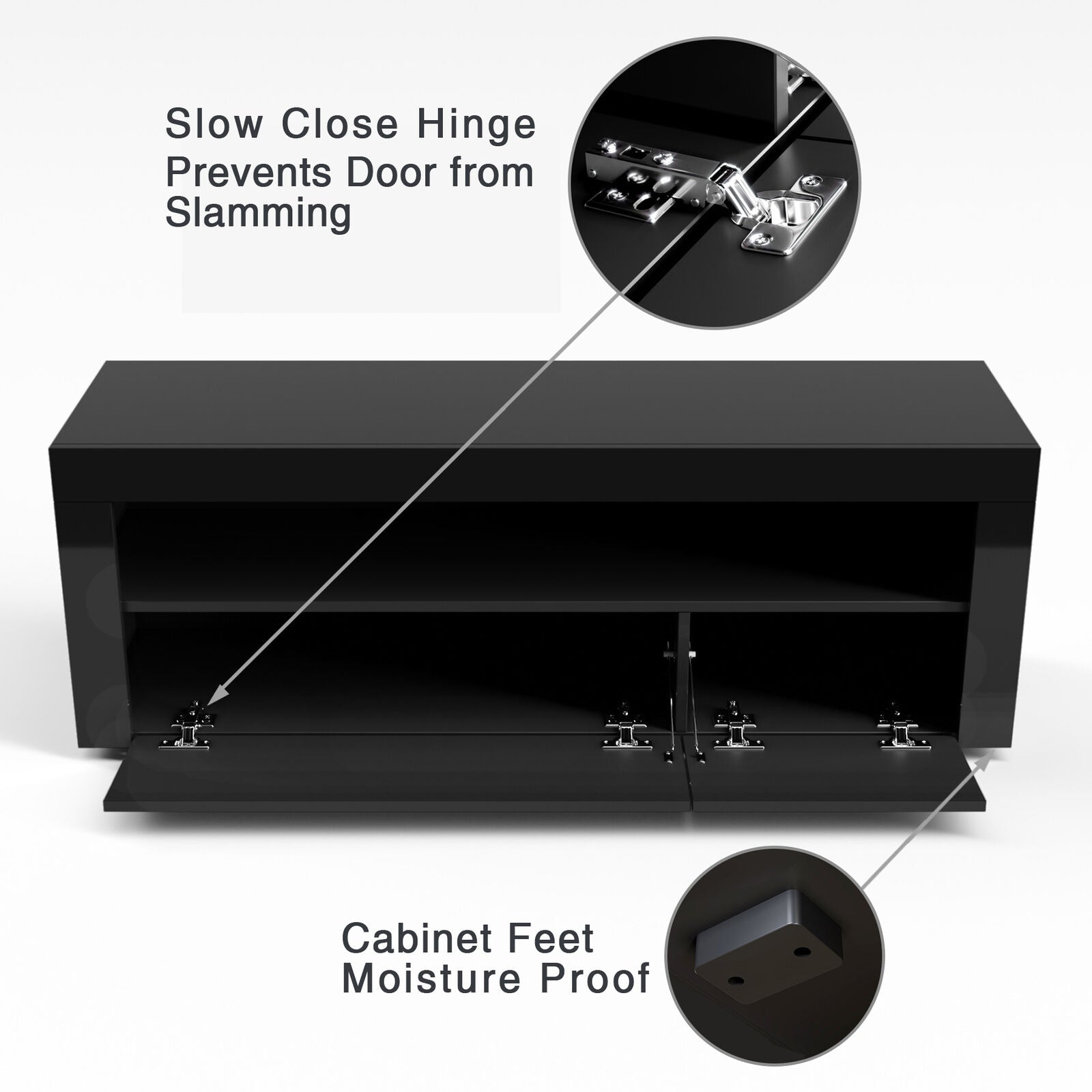 Modern TV Stand Unit Cabinet Living Room Set Entertainment Gloss Doors Free LED