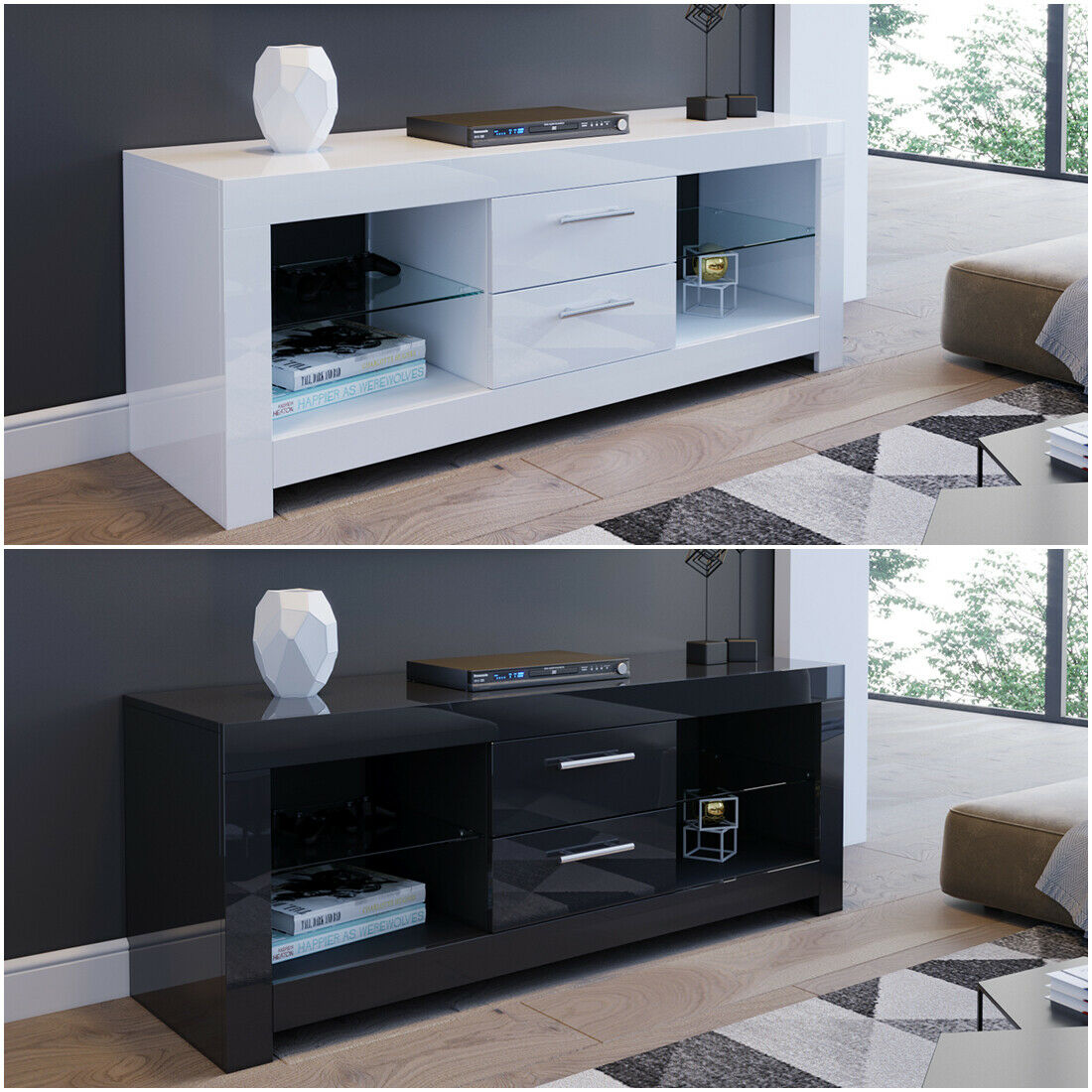 - Features: Flat Pack, High Gloss, With Drawers, With LED