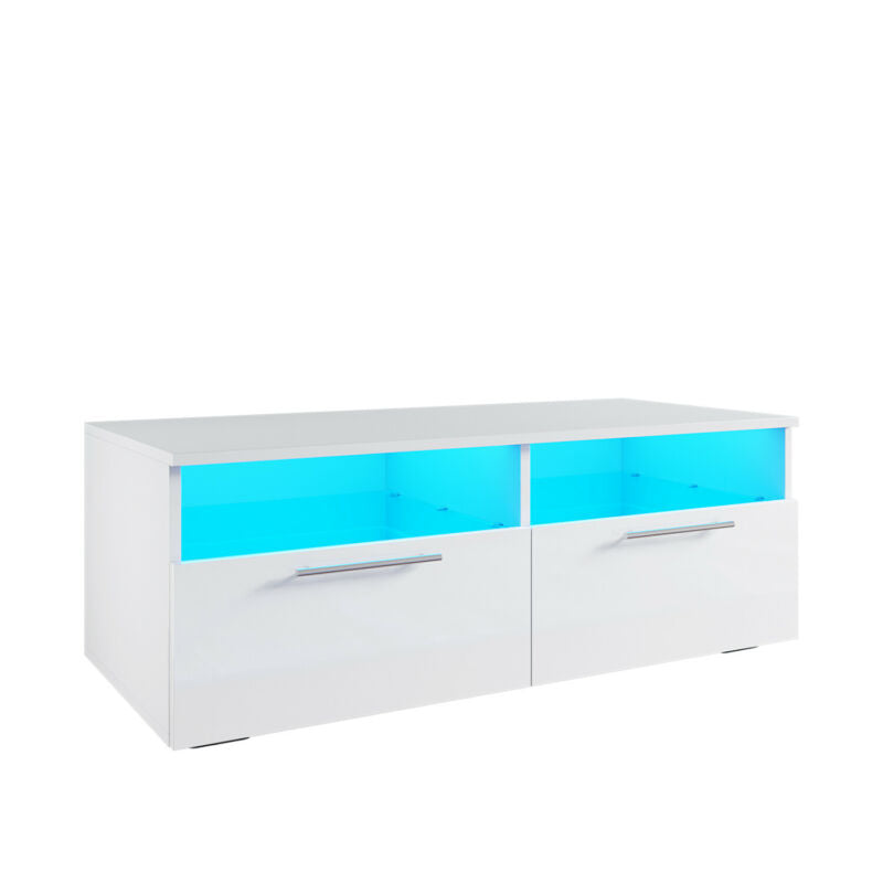 Modern TV Stand White/Black High Gloss Unit Cabinet LED RGB Lights with Drawers