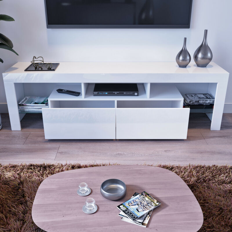 - Features: Flat Pack, High Gloss, With Drawers, With LED, With Shelves