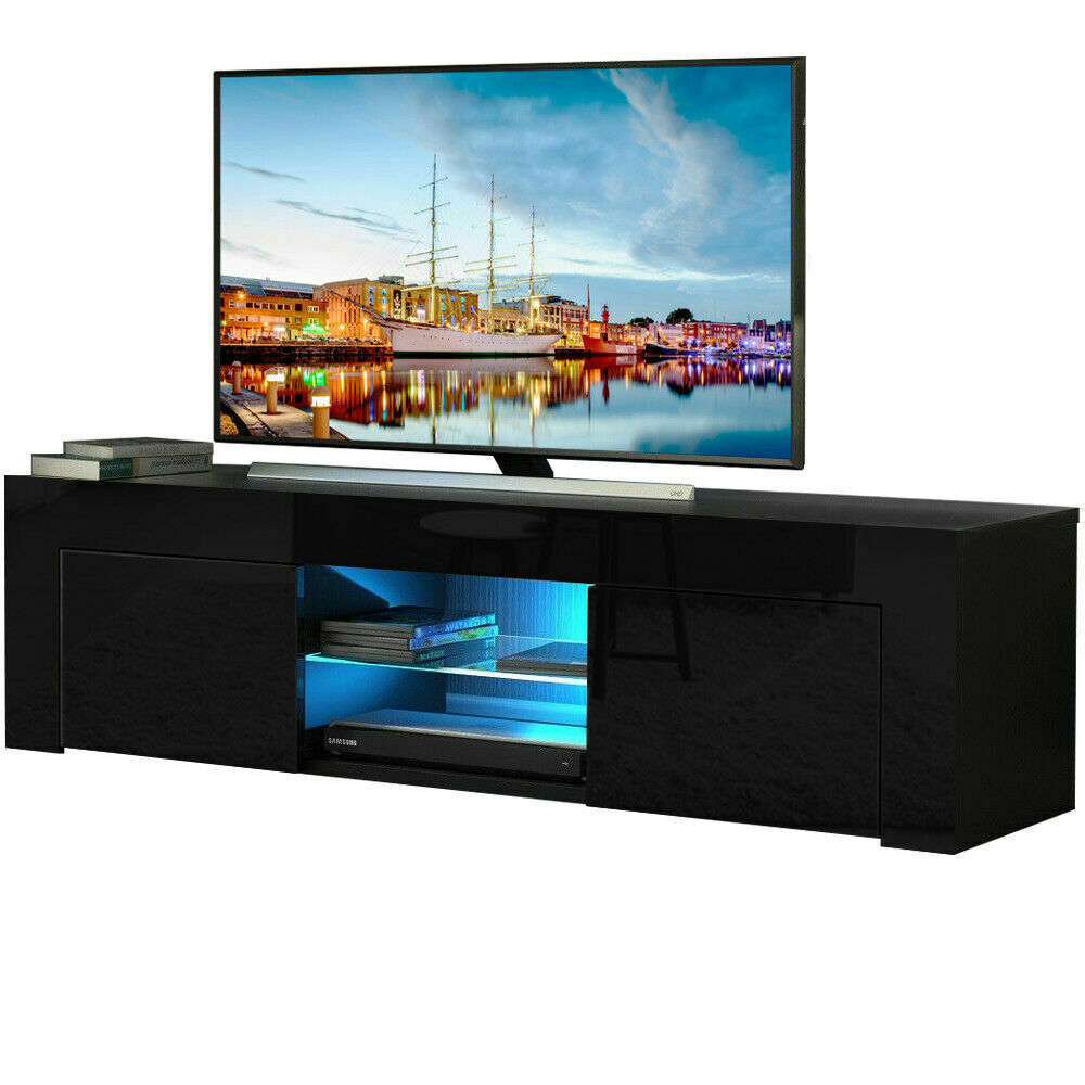 Modern TV Unit Cabinet Cupboards TV Stand High Gloss Doors with LED Light Drawer