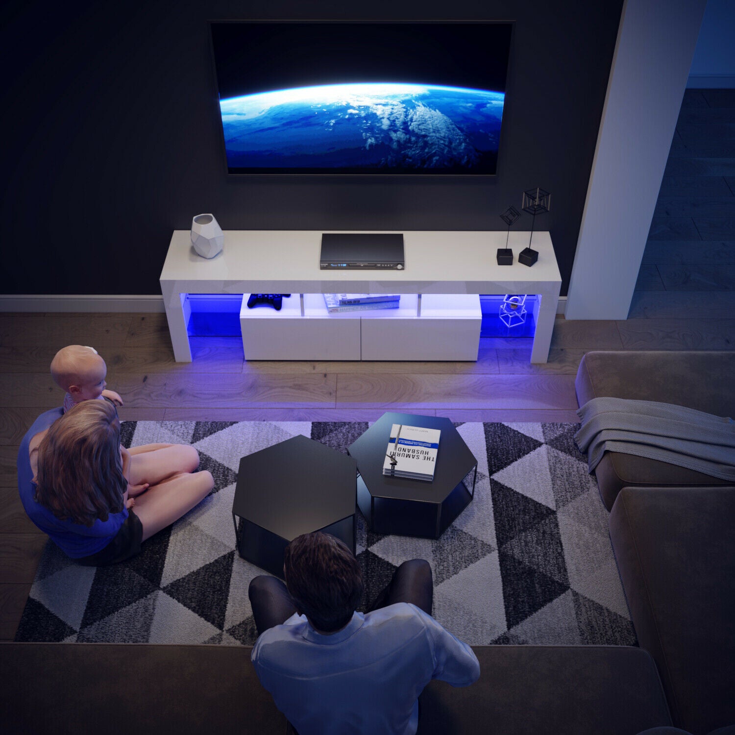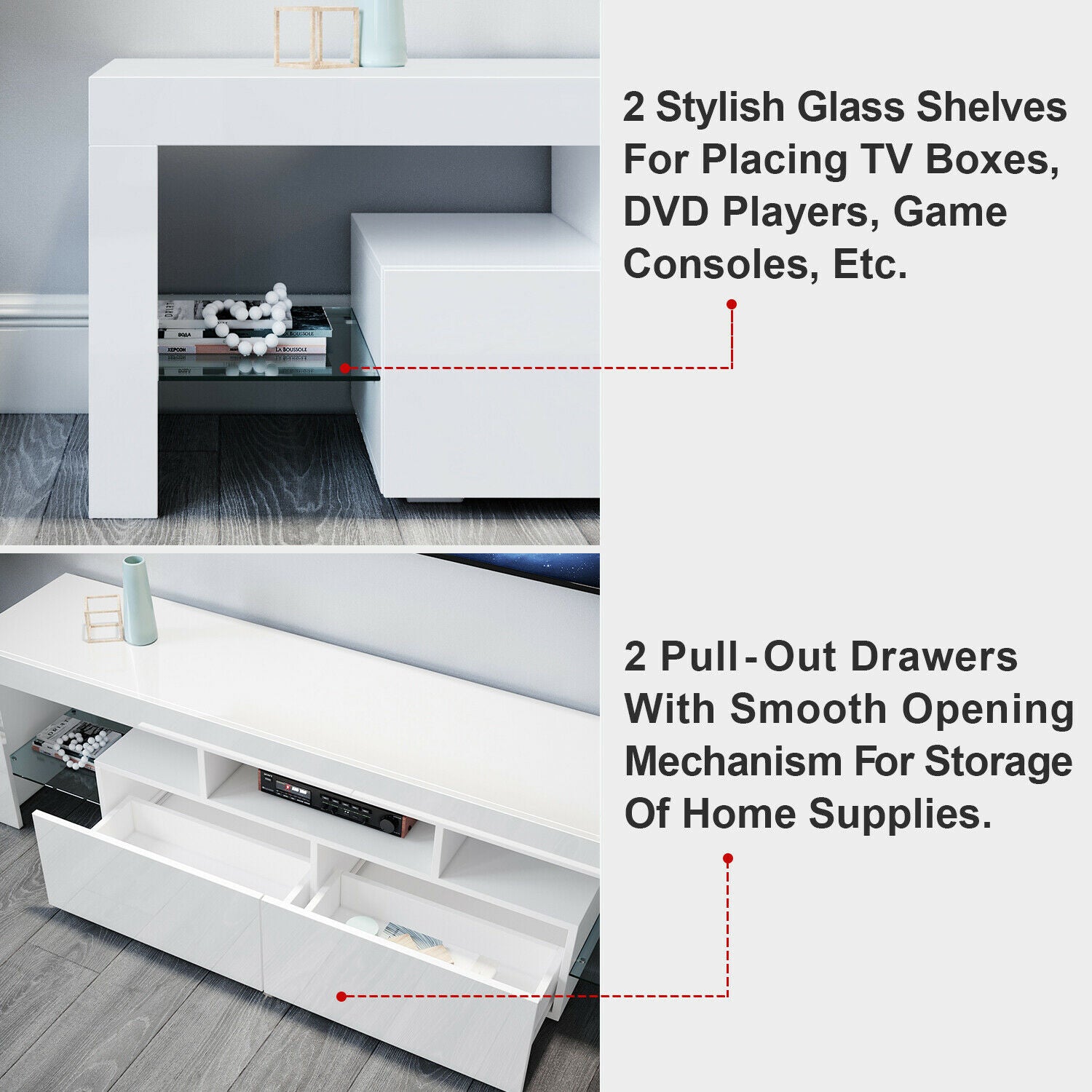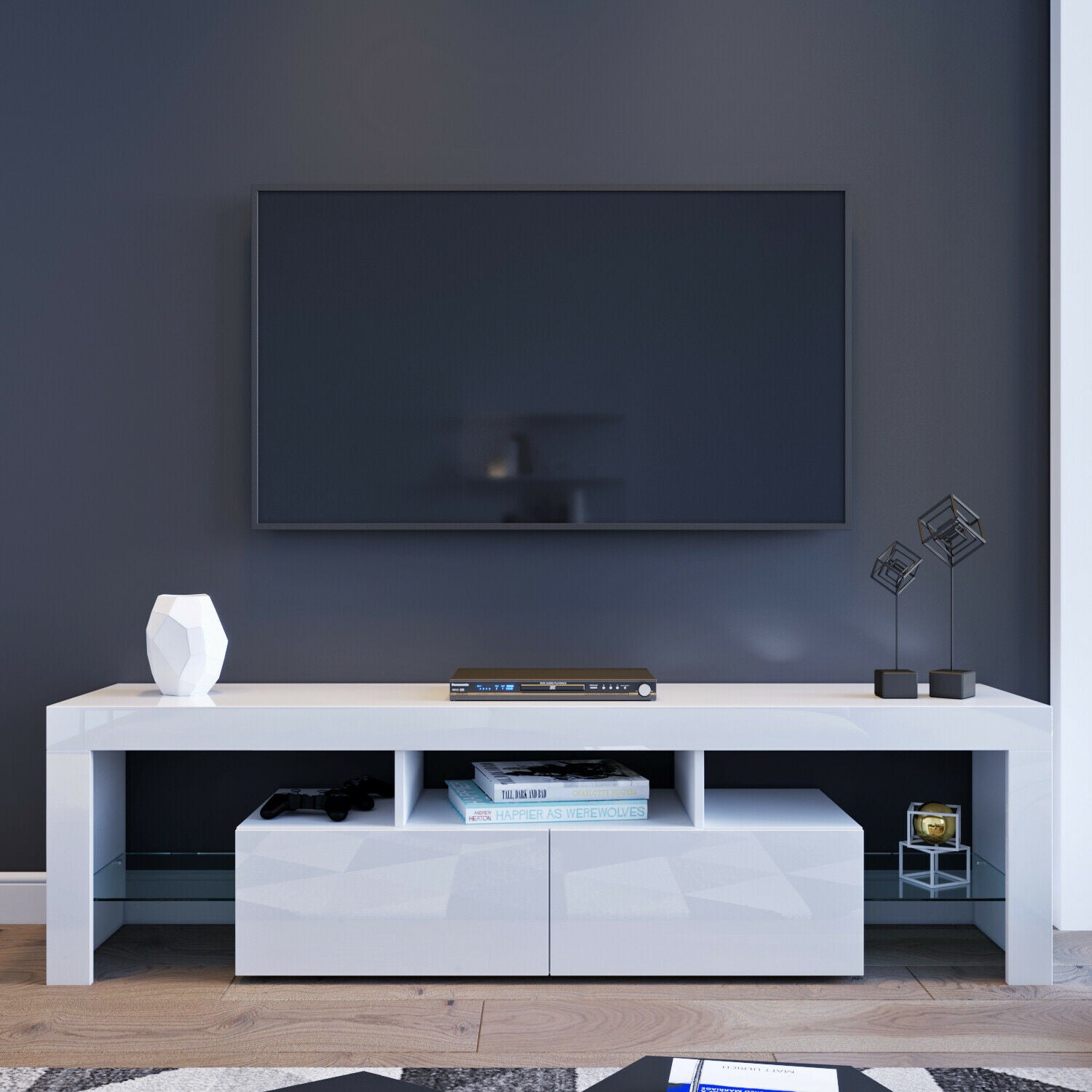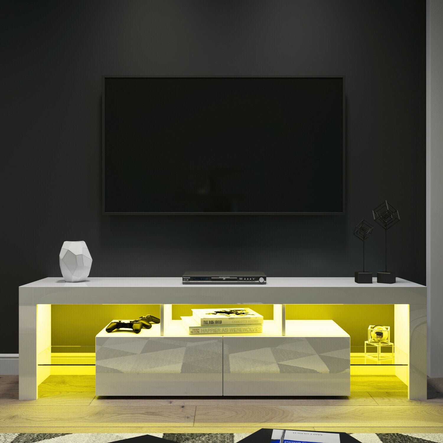 Modern TV Unit Cabinet Stand Entertainment Living Room Set MFC Gloss LED White