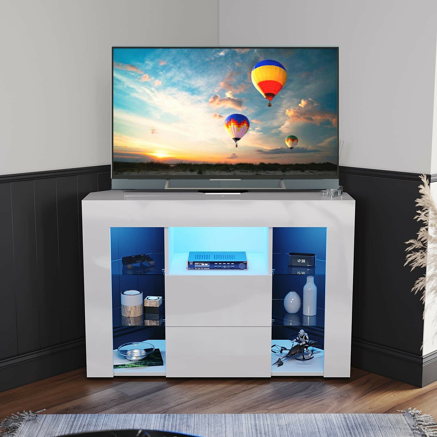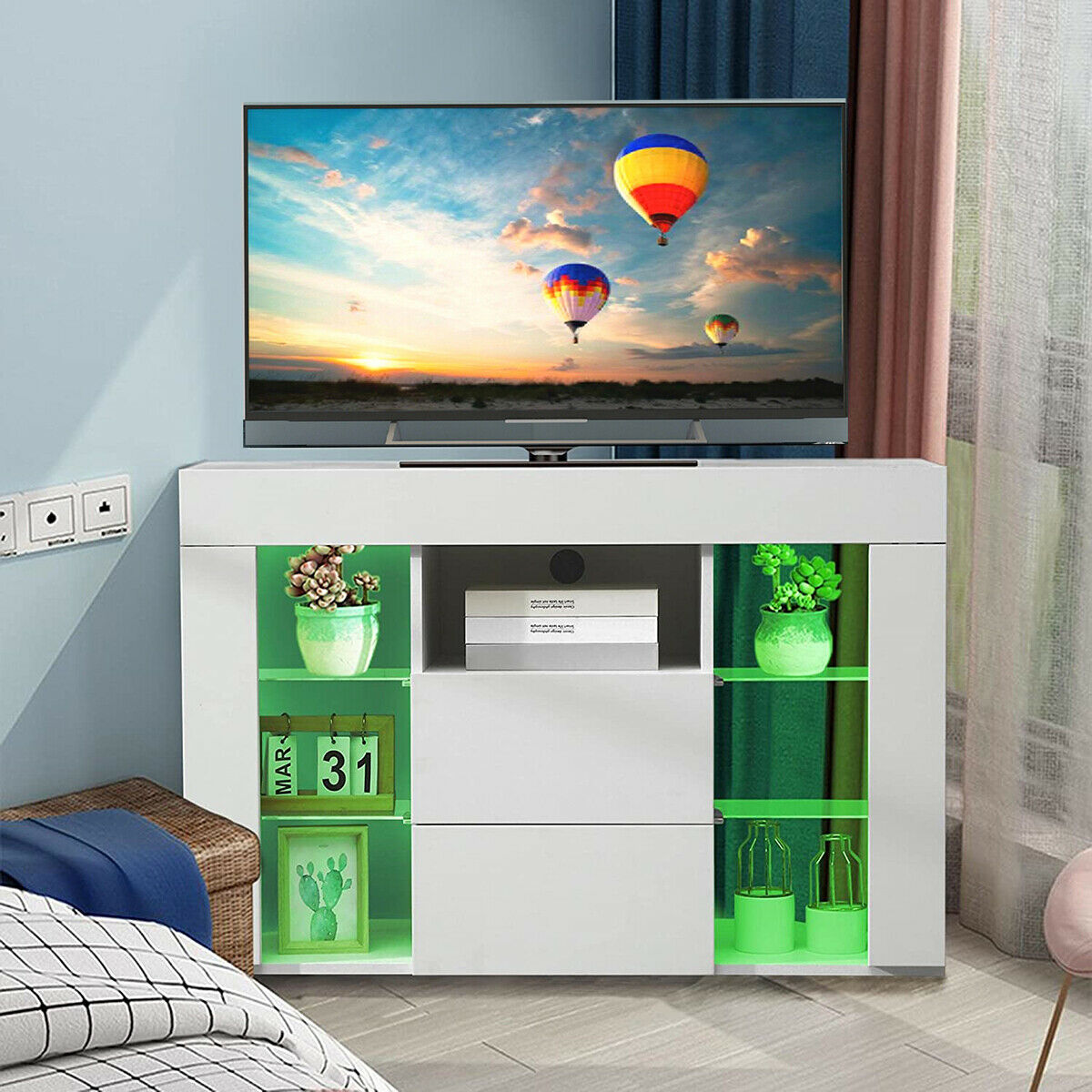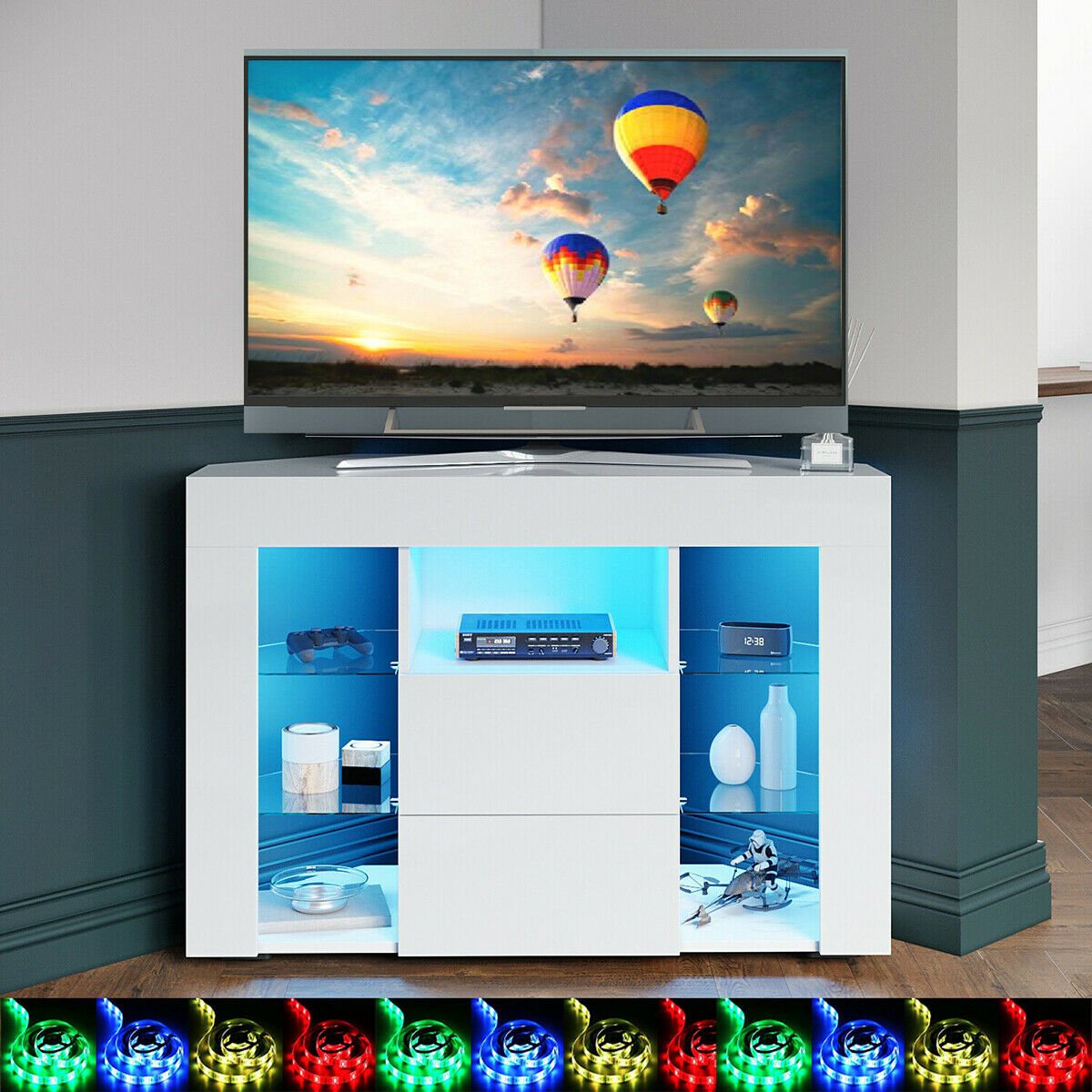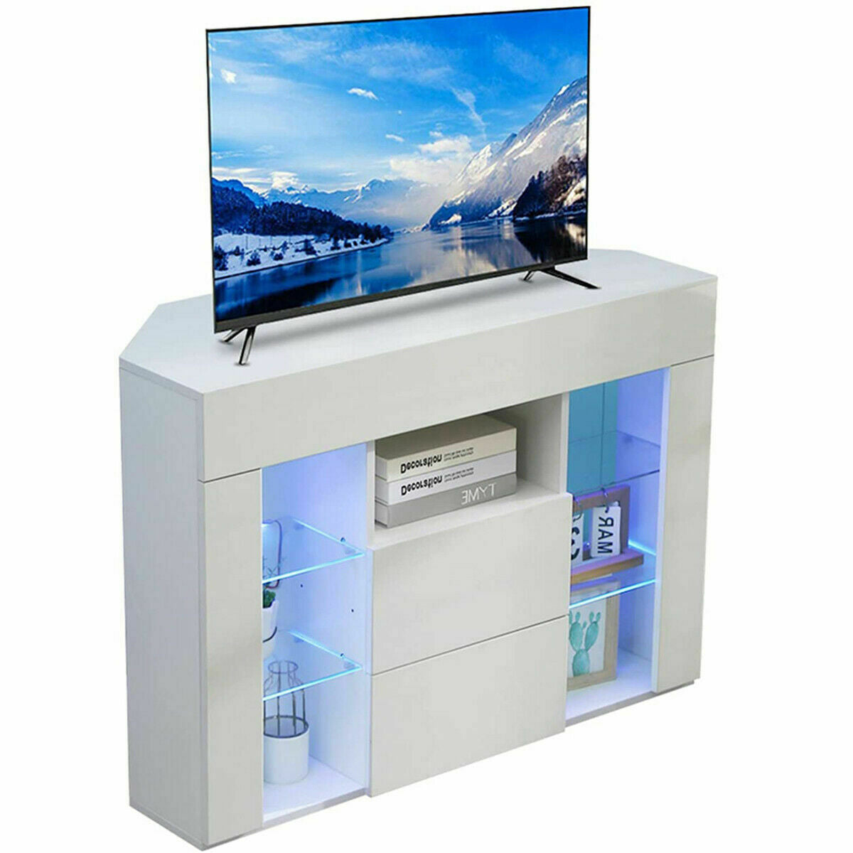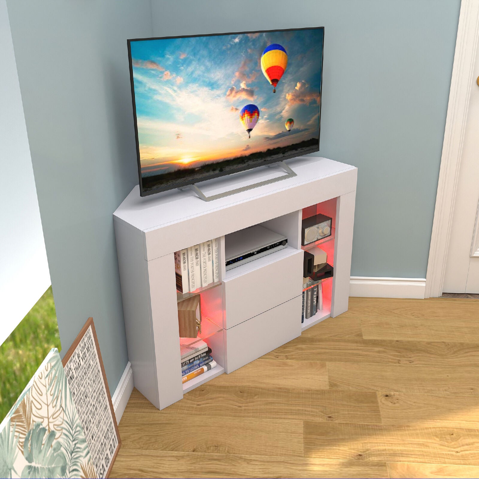 Modern TV Unit Cabinet Stand High Gloss Doors Matt Body with LED Lights Corner