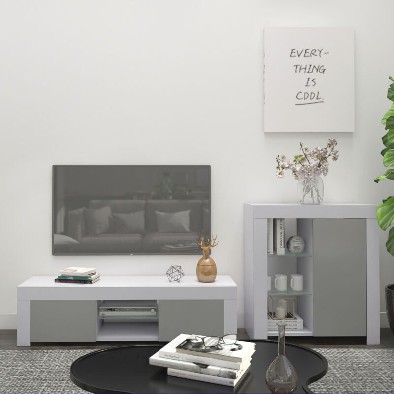 Modern TV Unit Cabinet Stand Sideboard Matt body & High Gloss Doors LED Light
