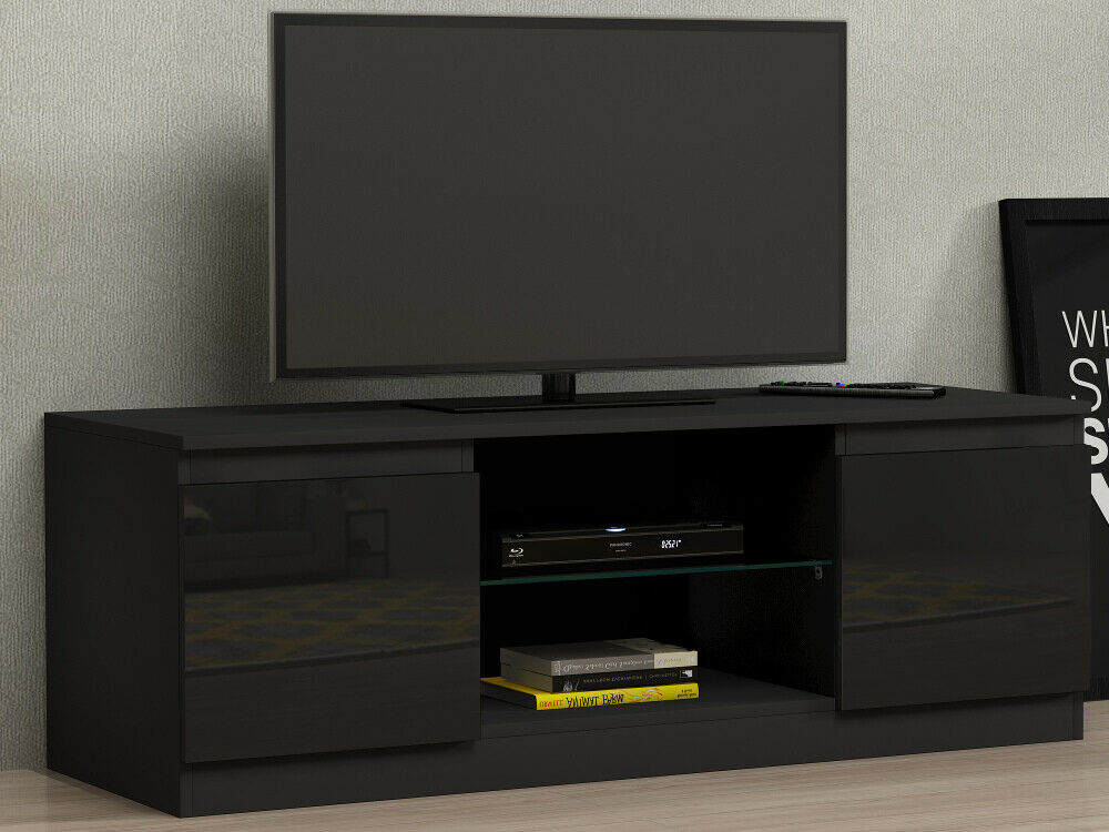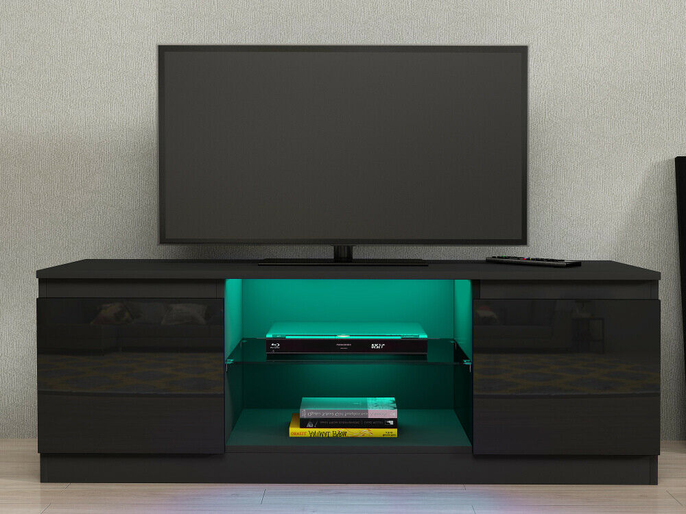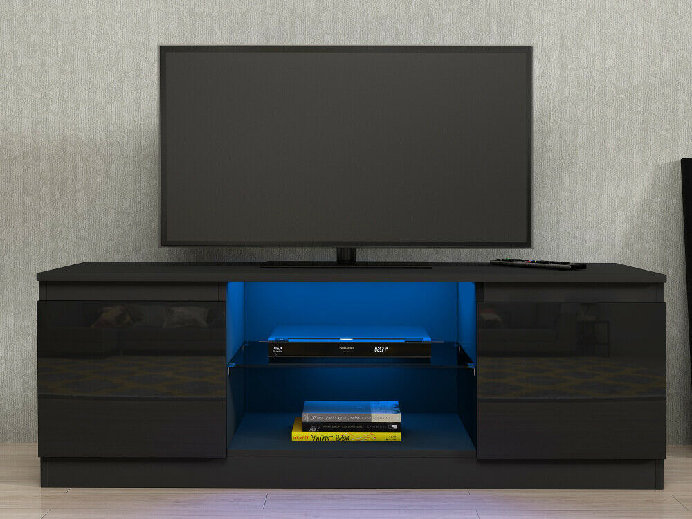 Modern TV Unit Stand Cabinet Black High Gloss Doors Matt Body Sideboard with LED