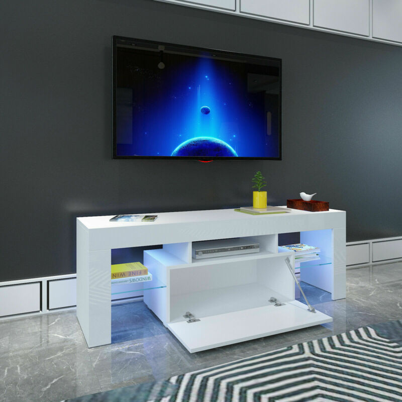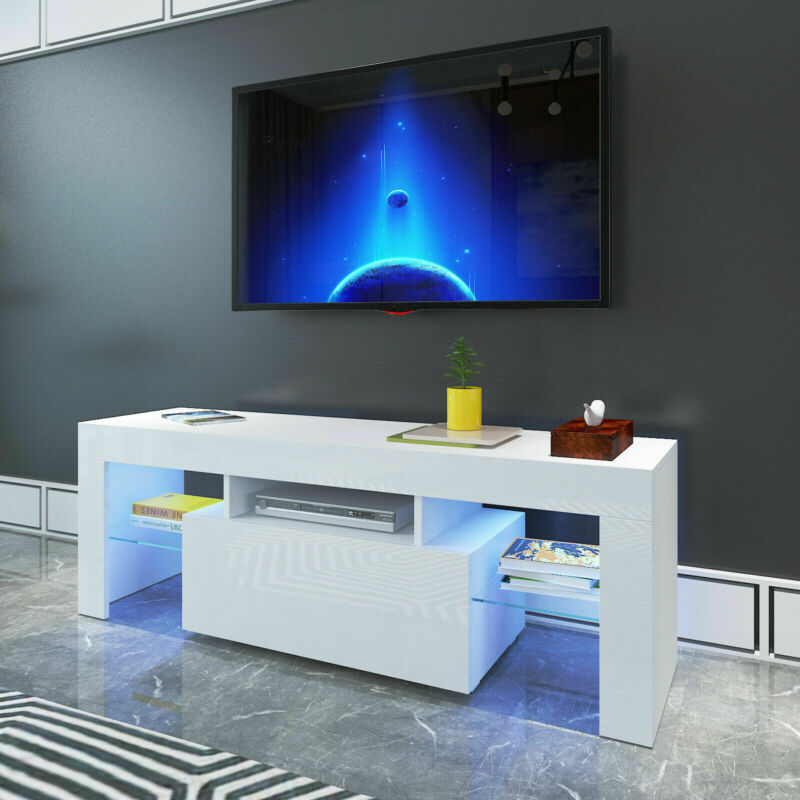 Modern TV Unit Stand Cabinet White Sideboard High Gloss Door Matt Body LED Wood
