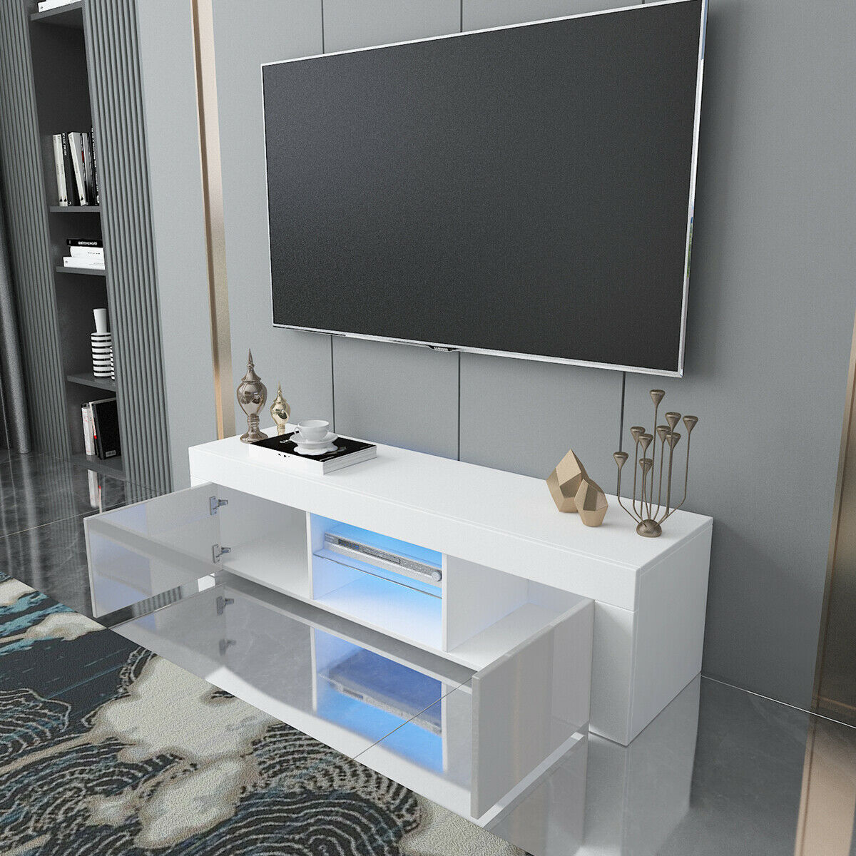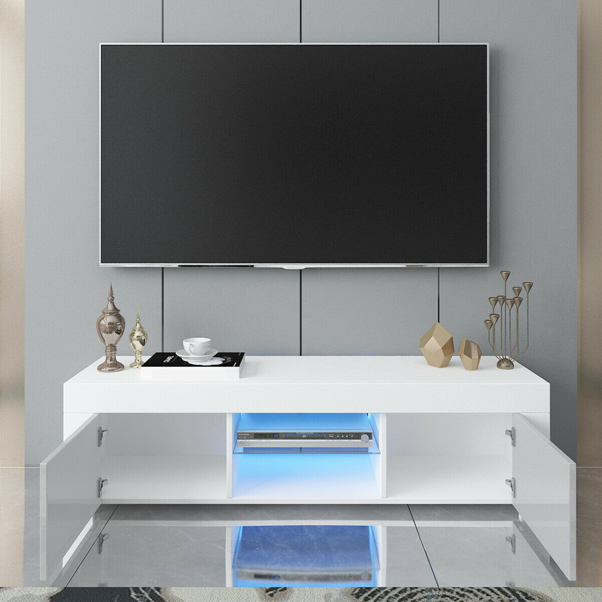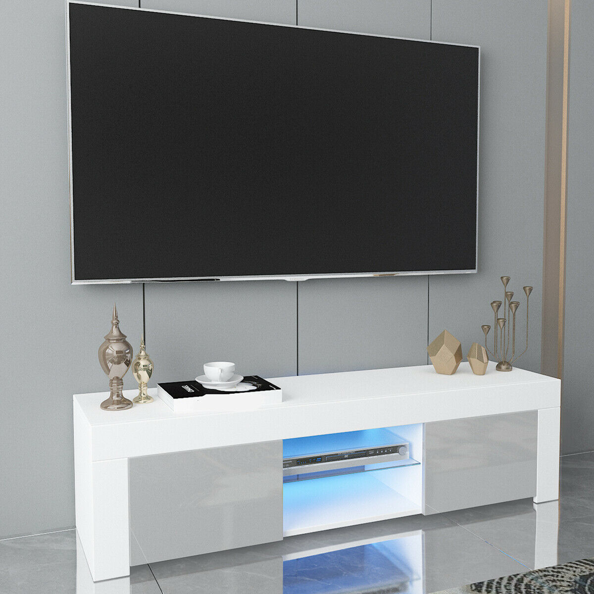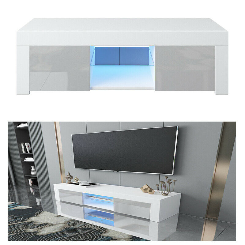 Modern TV Unit Stand White Cabinet Wood Matt & High Gloss Doors Sideboard LED