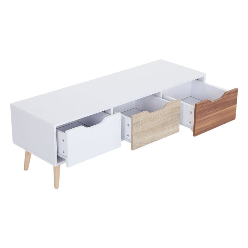 Modern TV Unit Wooden Media Stand Cabinet Storage Shelf 3 Large Drawers Racking