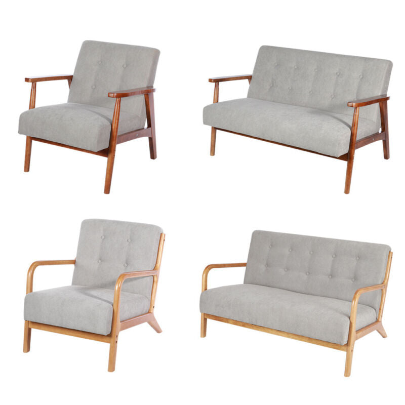 1/2 Seater Sofa Armchair Wooden Frame w/ Fabric Upholstered Tech Velvet Seat Grey