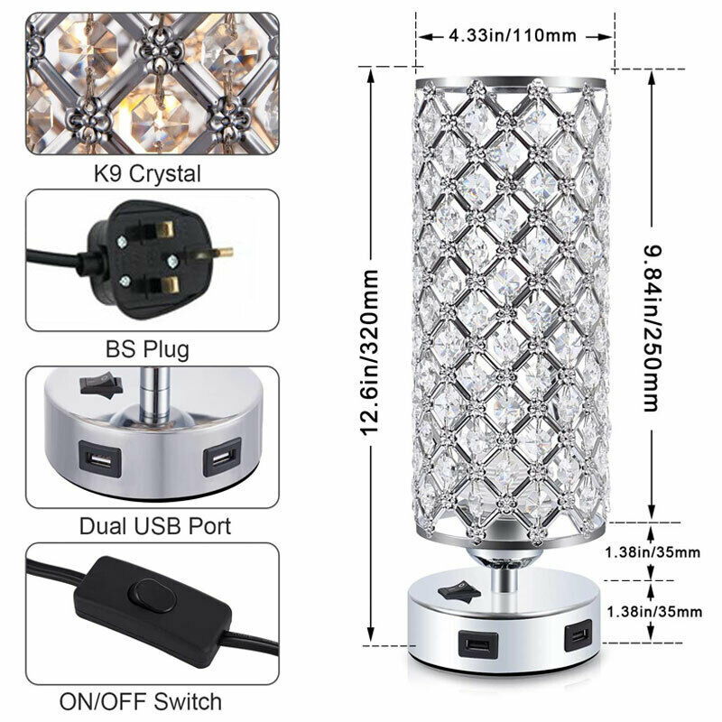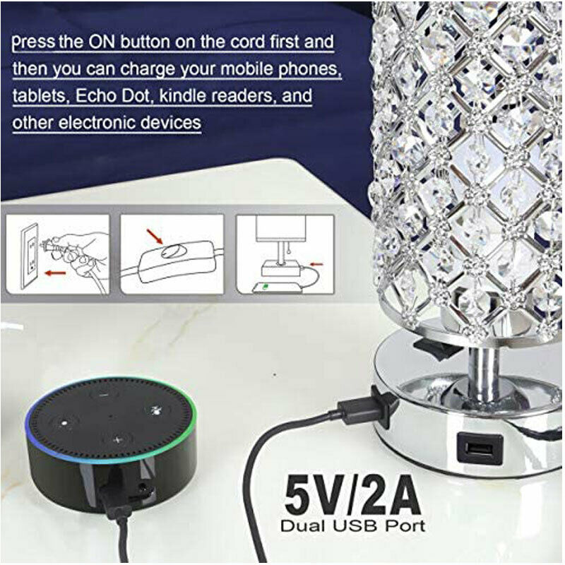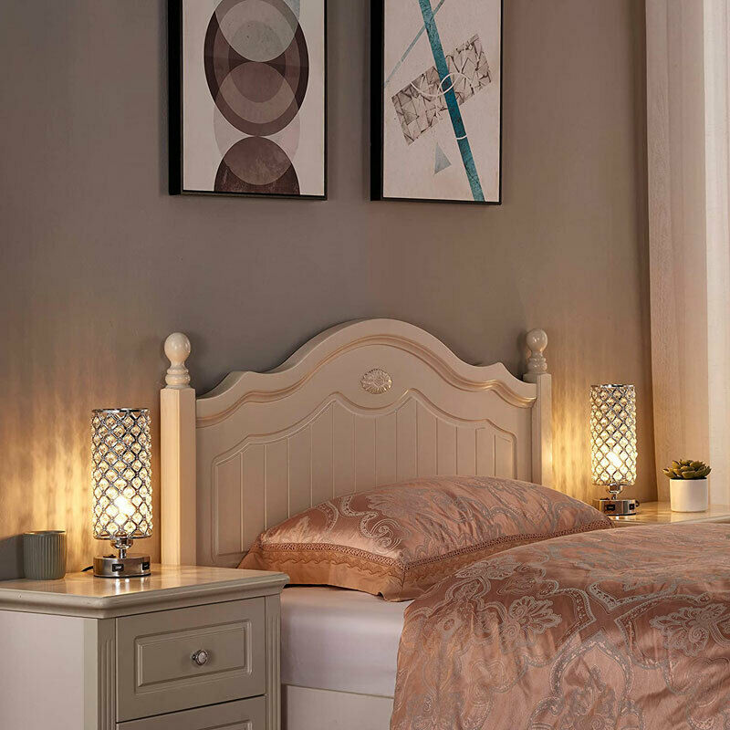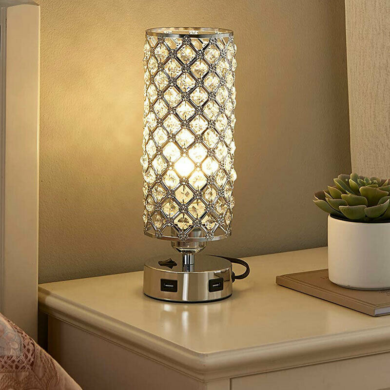 Modern USB Crystal Table Lamp Bedside Light Lighting Home Bedroom Decor (Without bulb)