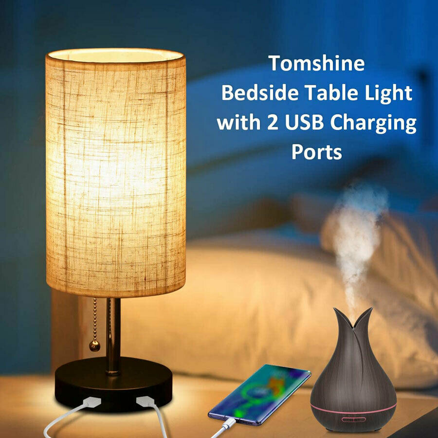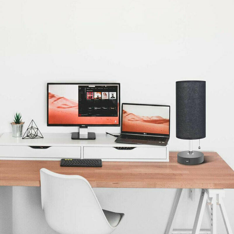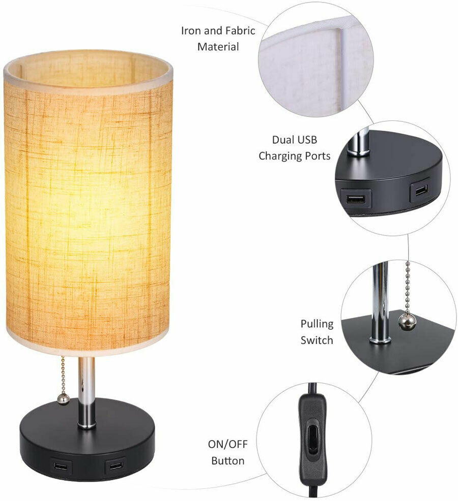 Modern USB Table Lamp Fabric Bedside Table Lamp With Dual USB Charging Ports