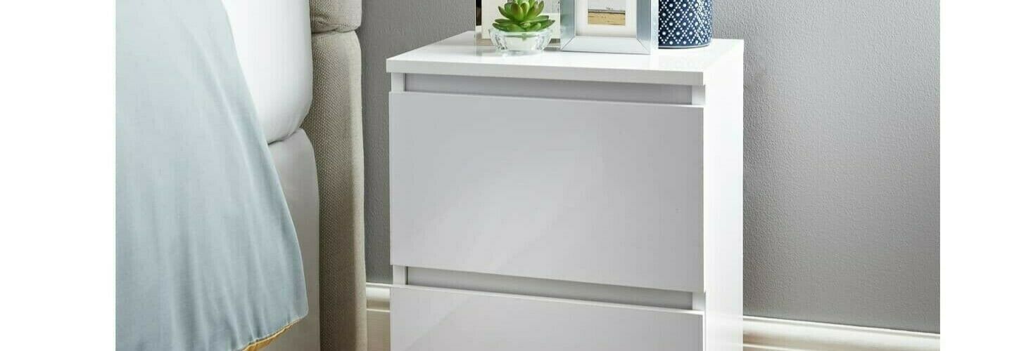 Modern White (2 Drawers) Bedside Table Cabinet - White High Gloss