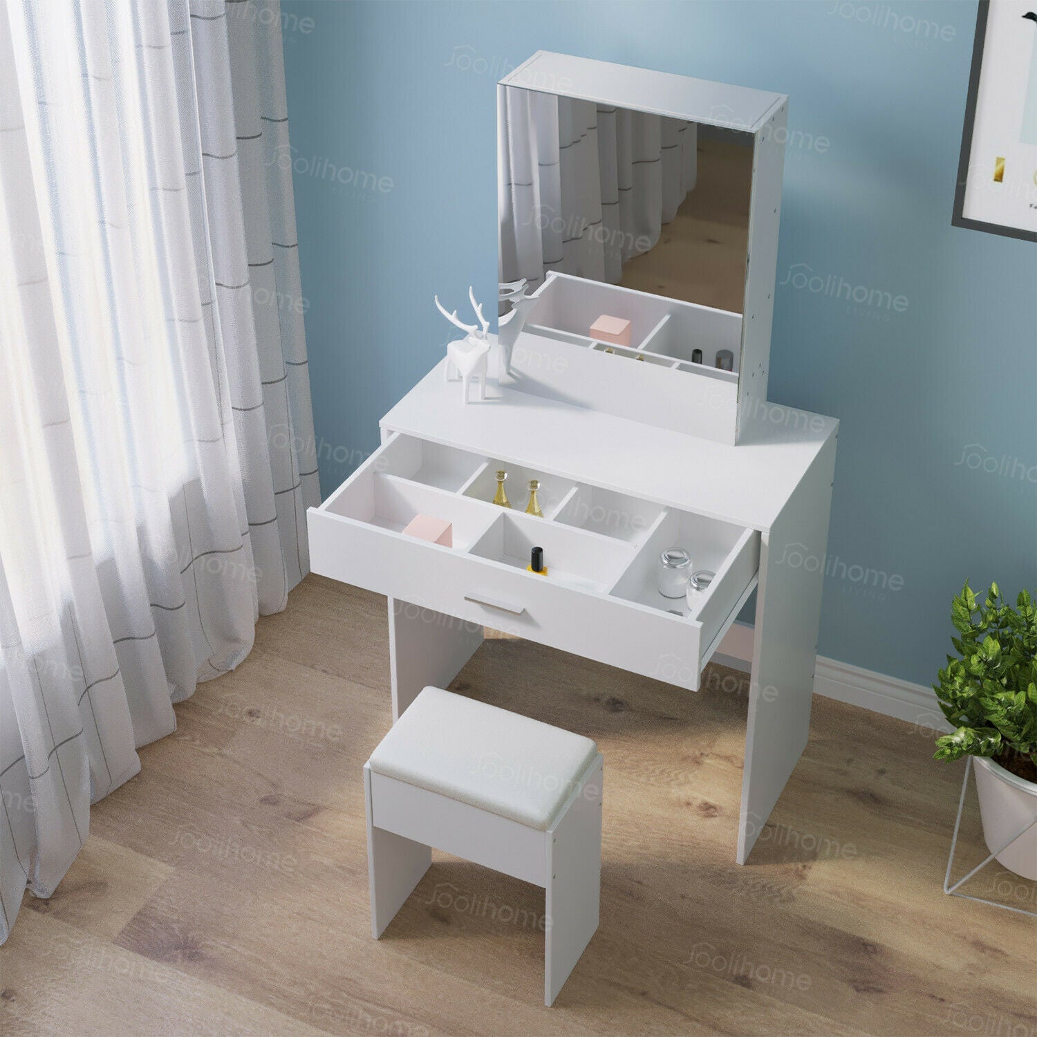 Modern White Dressing Table Makeup Vanity Desk w/ Drawer&Sliding Mirror Bedroom