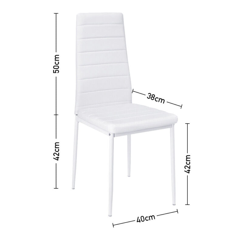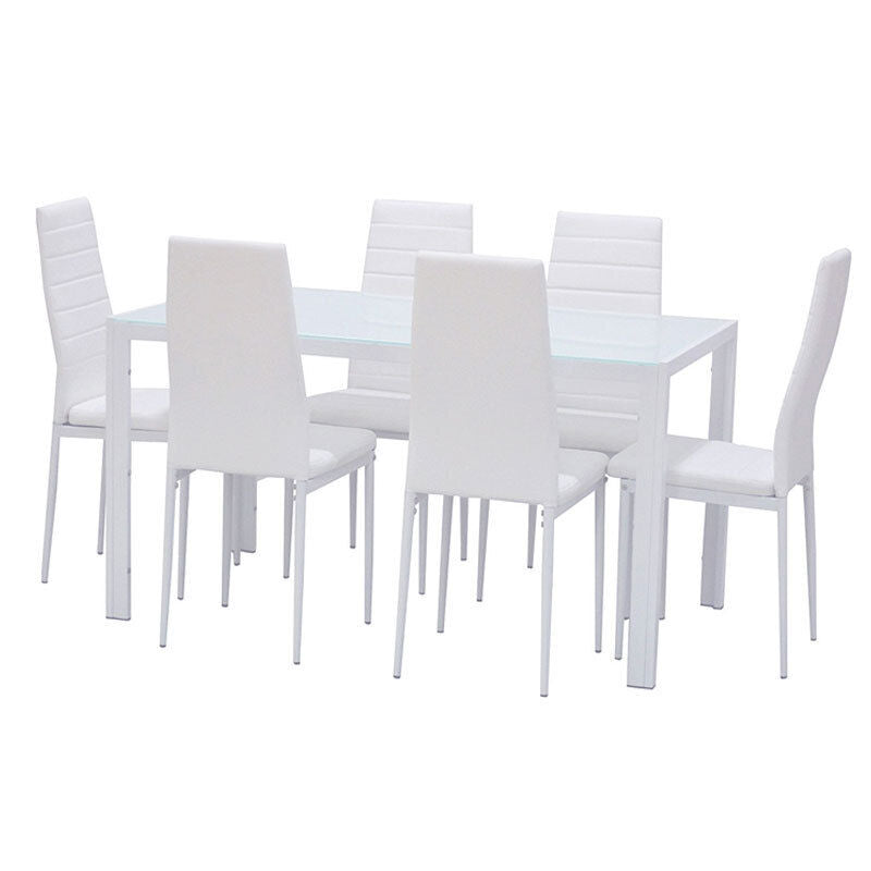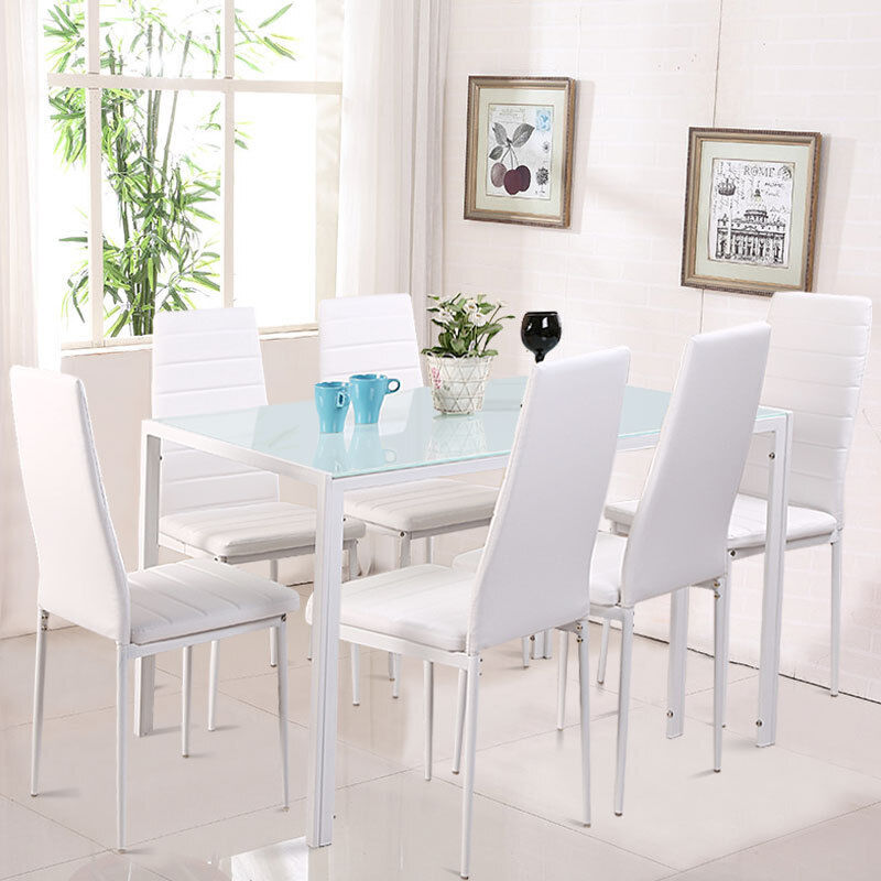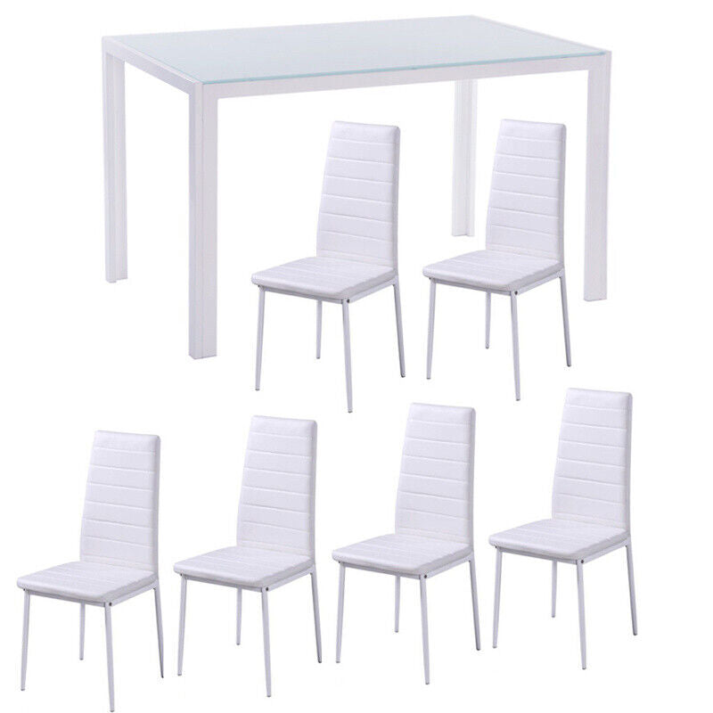 Modern White Glass Dining Table with 6 Faux Leather Chairs Living Room Kitchen