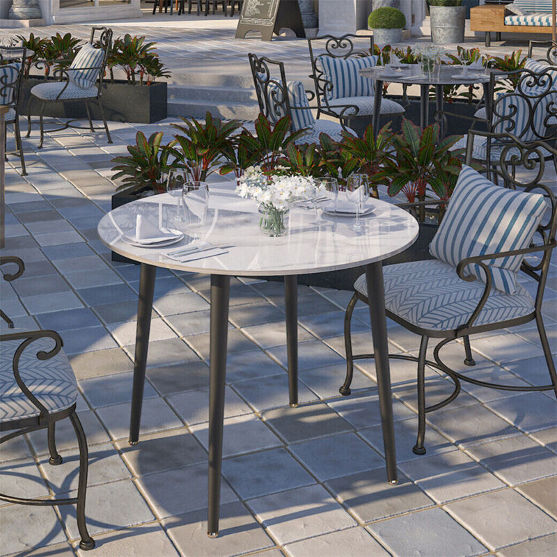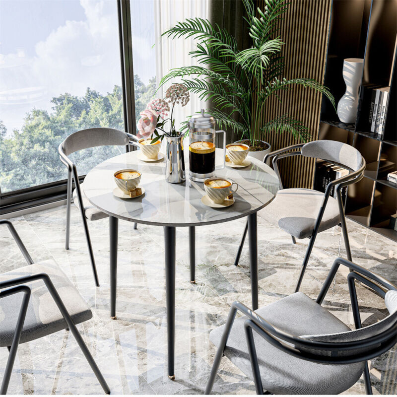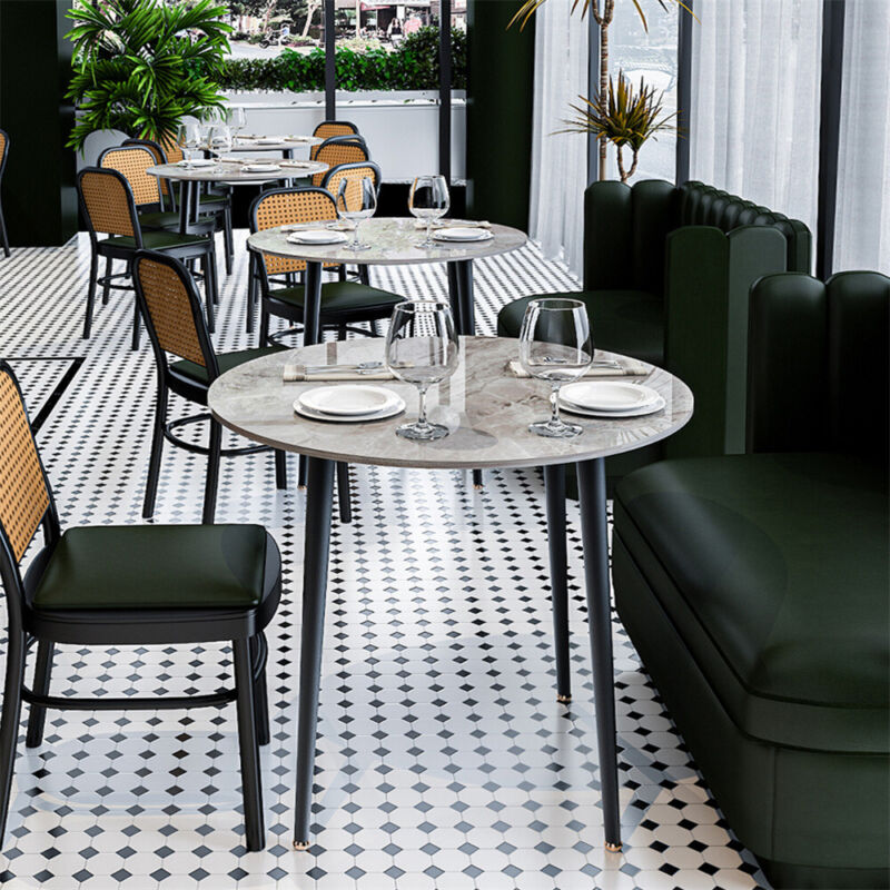 Modern White Grey Marble Kitchen Dining Table Bistro Cafe Table w/ Pedestal Base