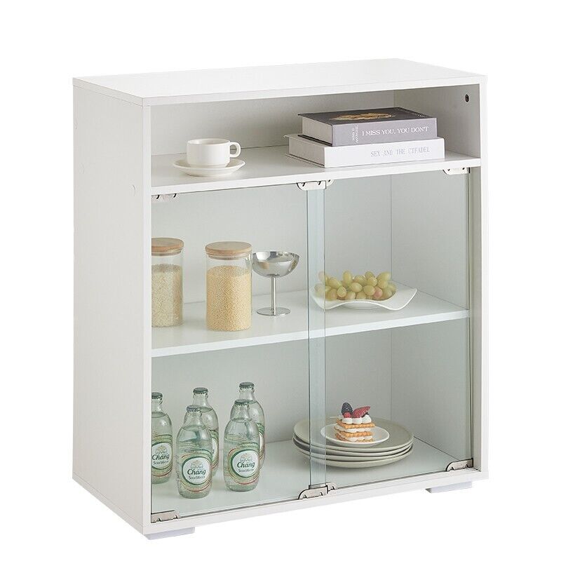 Modern White Sideboard Display Cabinet With RGB LED Cupboard Storage Unit