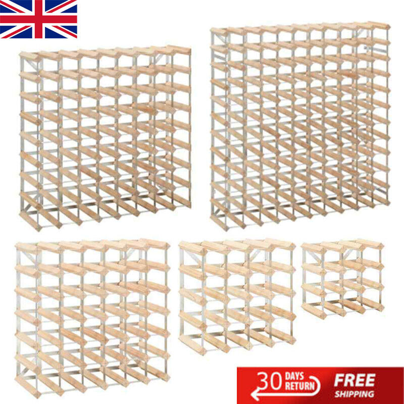 Modern Wine Rack Bottle Shelf Solid Pinewood Display Holder Storage Cabinet
