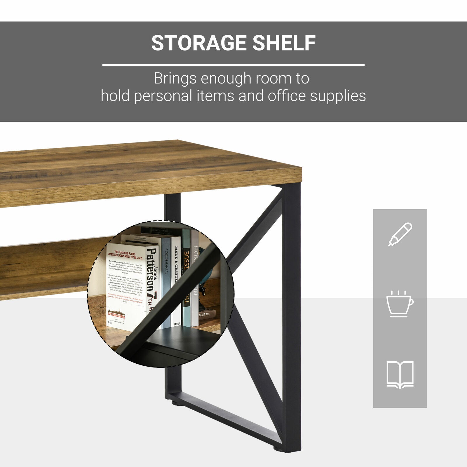 Modern Writing Table Shelf Book Storage Metal Computer Desk Brown Office Small